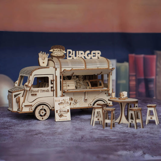 3D Wooden Puzzles for Adults Model Car Kits Wood Fast Food Truck Mechanical Models Building Kit