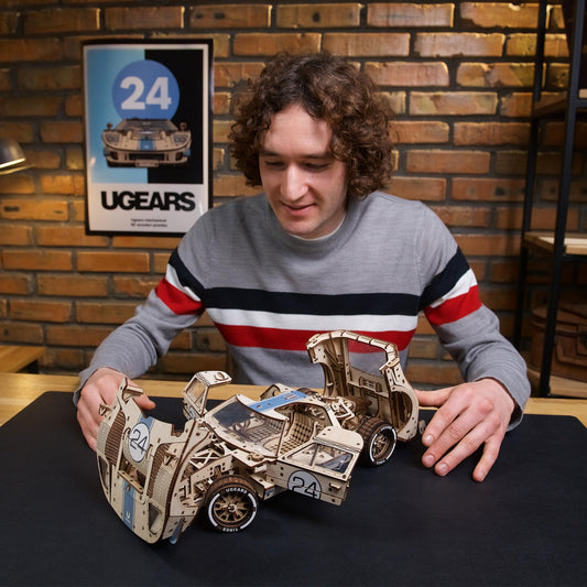 UGEARS UGT-24 Endurance Racer 3D Wooden Puzzles for Adults - DIY Model Car Kits 3D Puzzle, Mechanical Wooden Model Kits for Adults to Build, Wood Sports Car Racing Brain Teaser, Hobby Gift