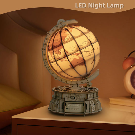 MIEBELY 3D Wooden Puzzles for Adults USB Charging Illuminated Globe Music Box DIY LED Wood Model Building Kits with Space Projector Stem Toys for Kids Desk Decor for Boys/Girls Ages 8+