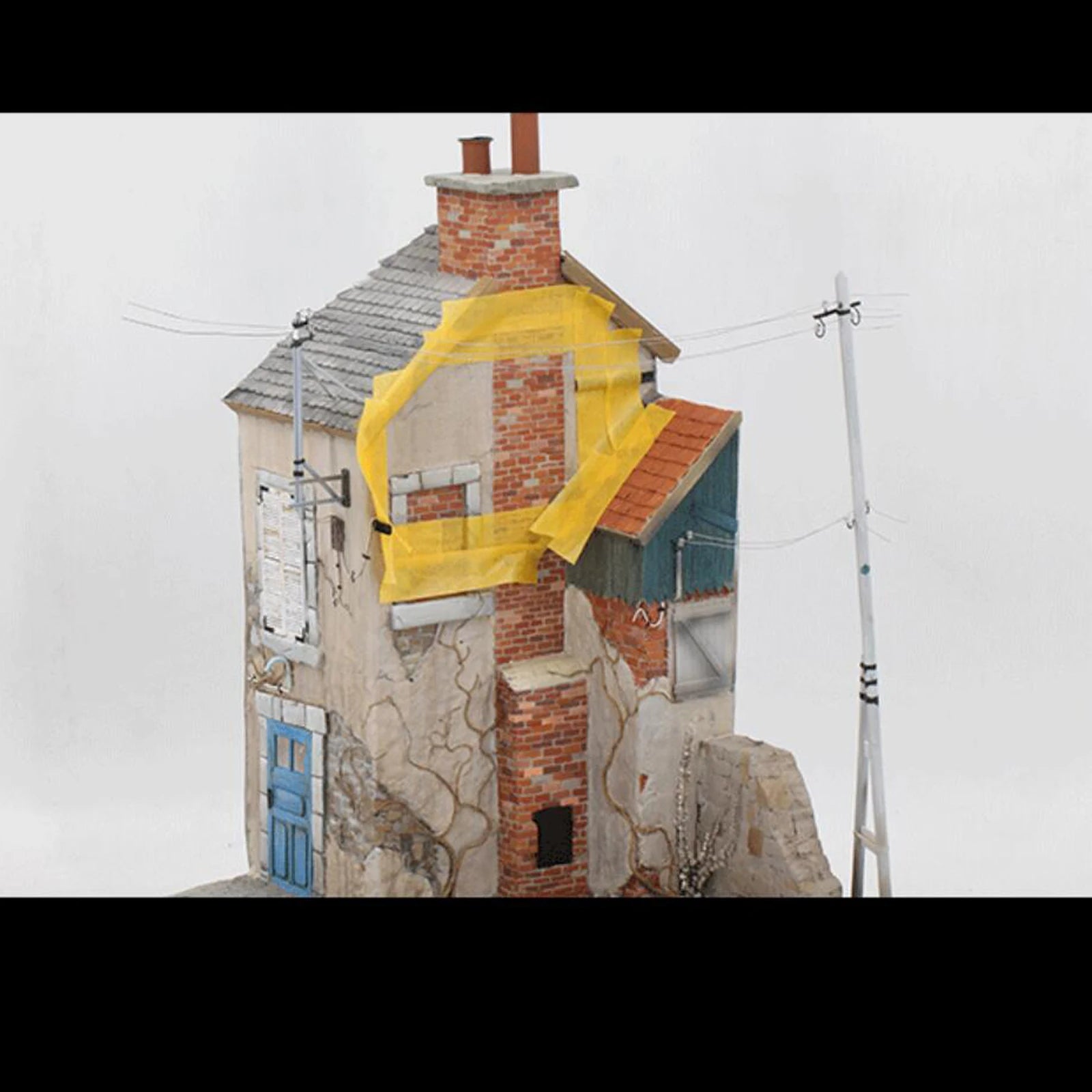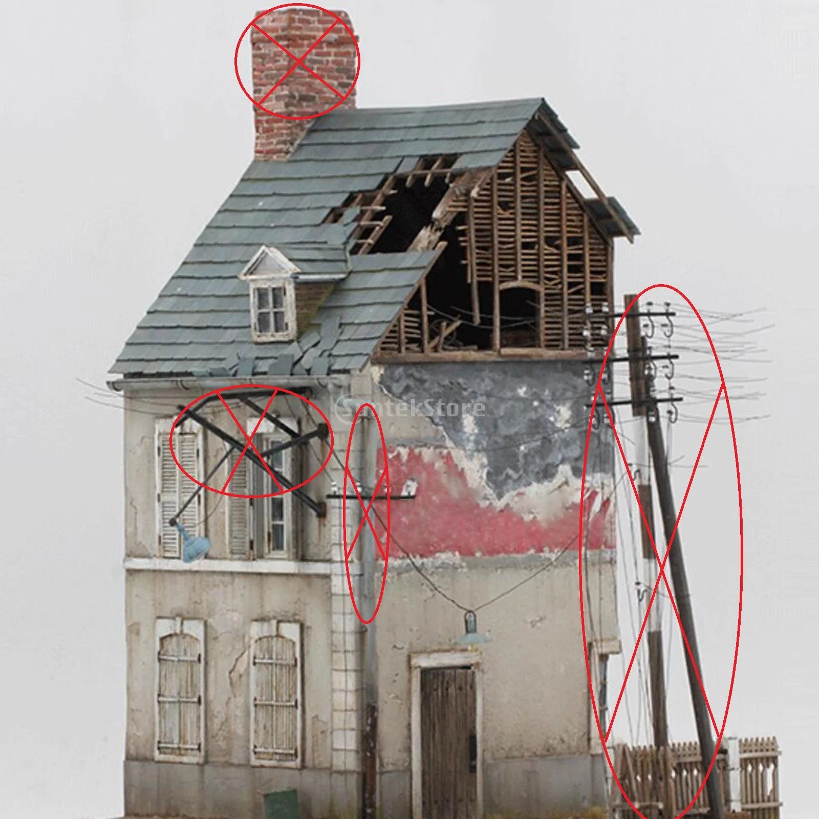 1/35 Wooden Hobby DIY Crafts Building Architecture House Scene Sand Table War Scene Miniature Houean Ruins House Scenery Toy