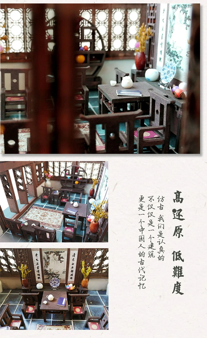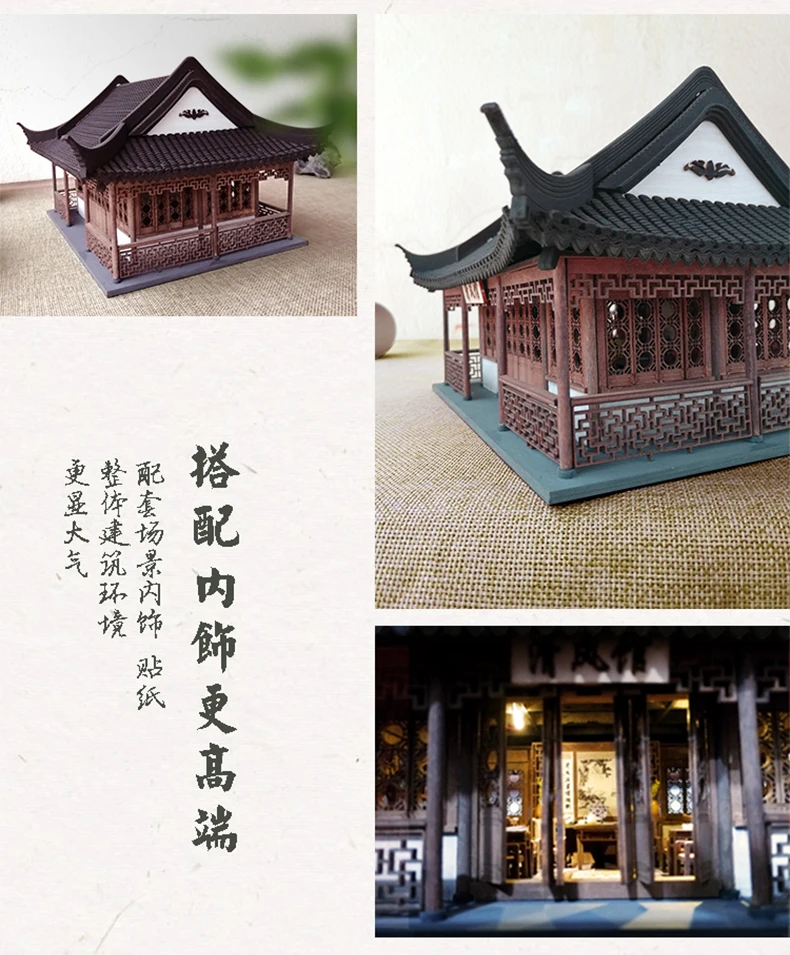 1:50 Scale Chinese Ancient Wooden House Model Kit – DIY Miniature Architecture Building Set for Home Decoration, Desk Display