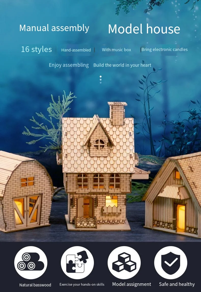 1:50 Scale Miniature Building Prefabricated House Wooden Cabin DIY Assembly Model Kit Wooden Constructor Architecture Material