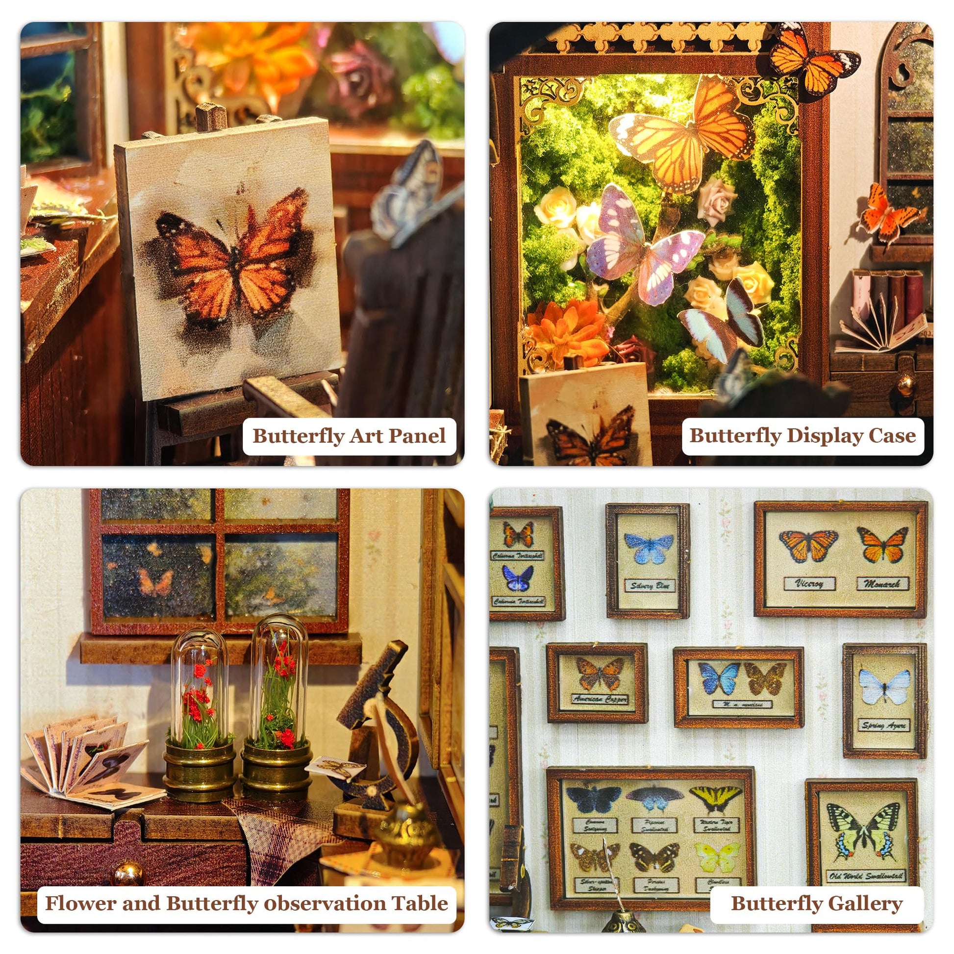 - Butterfly House Book Nook Kit:At the moment when the magic was lifted, countless butterflies flew from all over the forest, gathering into a swirling vortex of light.When first light breaks through the night sky, the butterflies transform into thin mist in the forest, leaving only phosphorescence on the grass leaves - as if to say that those crazy, gentle, dreamlike moments have never truly disappeared, but have been hidden in a different way, in the wind, in the space between butterfly wings flapping