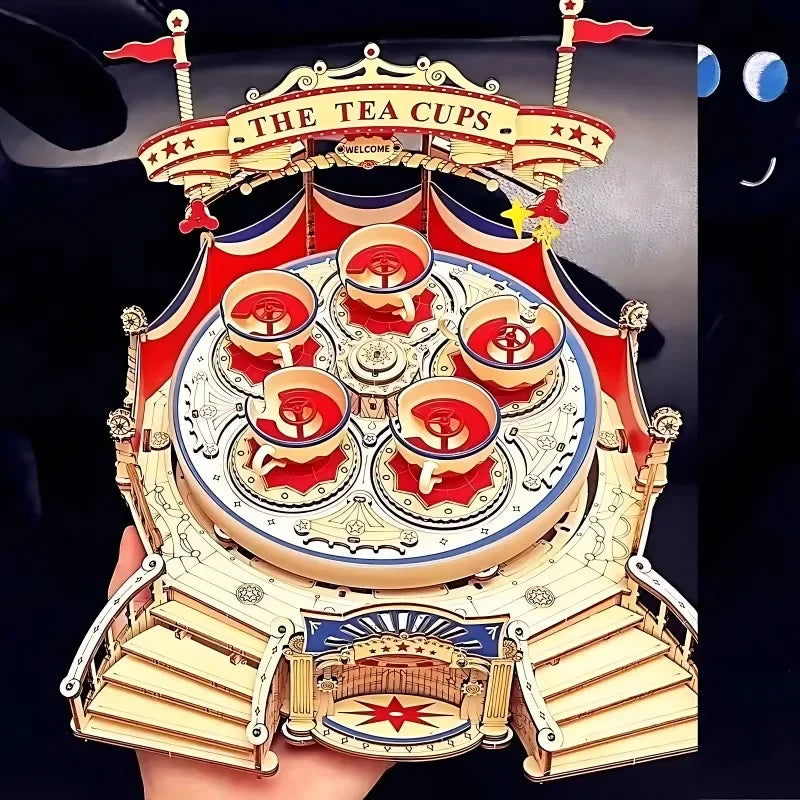 3D Wooden Assembly Model, Fairy Tale Rotating Cup, DIY, Birthday Gift, Three-dimensional Puzzle, Creative Ornaments, Carousel