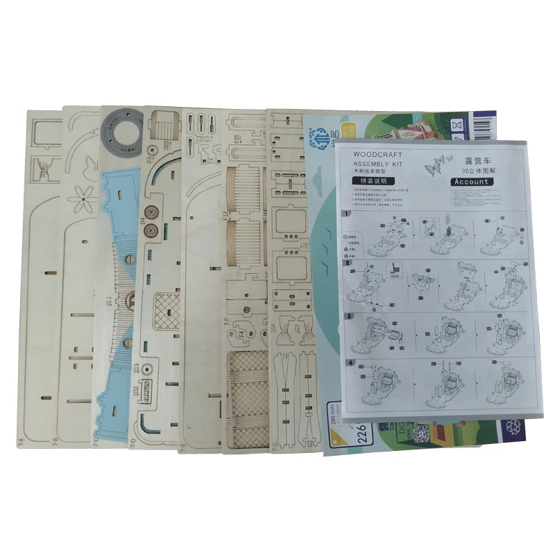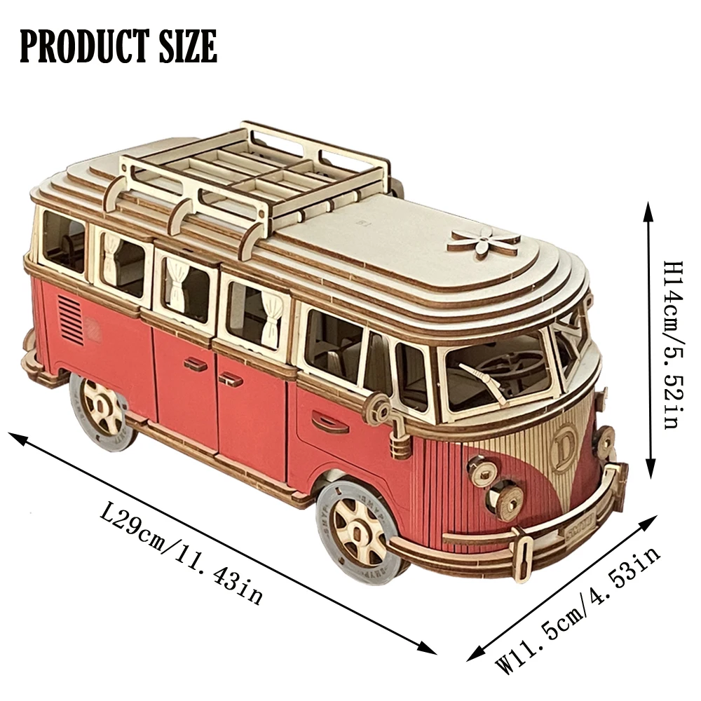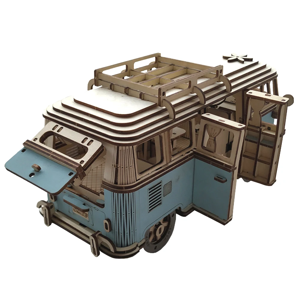 3D Wooden Car Puzzle Retro Bus European Style Campervan DIY Assembly Model Kit Educational Toy for Children Kids Home Decoration