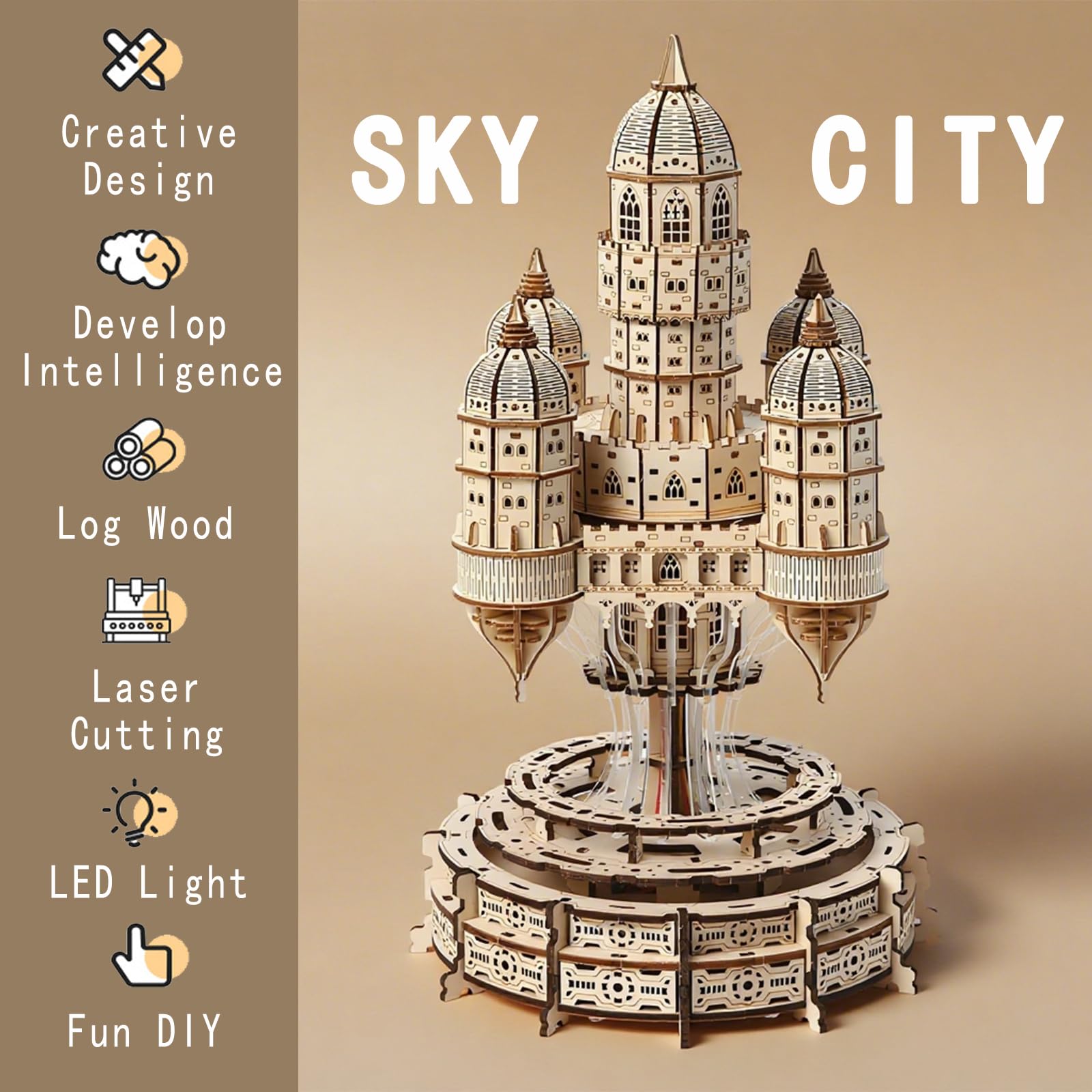 - INTRICATE DESIGN: 521-piece 3D wooden castle puzzle featuring detailed architectural elements, LED lighting effects, and mechanical components for an engaging building experience