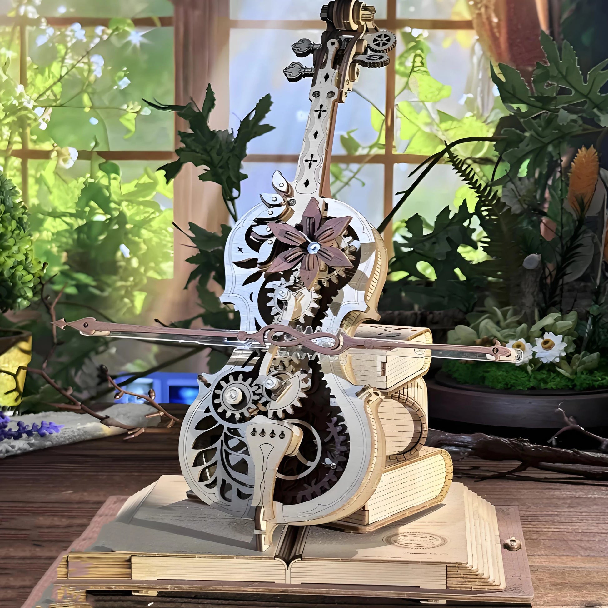 3D Wooden Cello Music Box DIY Movable Stem Creative Girls Educational Toy Gift AMK63