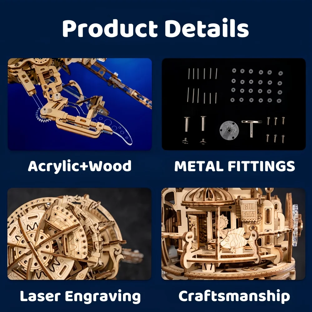 3D Wooden Jellyfish Model Kit Marine Life DIY Assembly for Adults & Teens, Ocean-Themed Home Decor Sculpture, Intricate Underwa