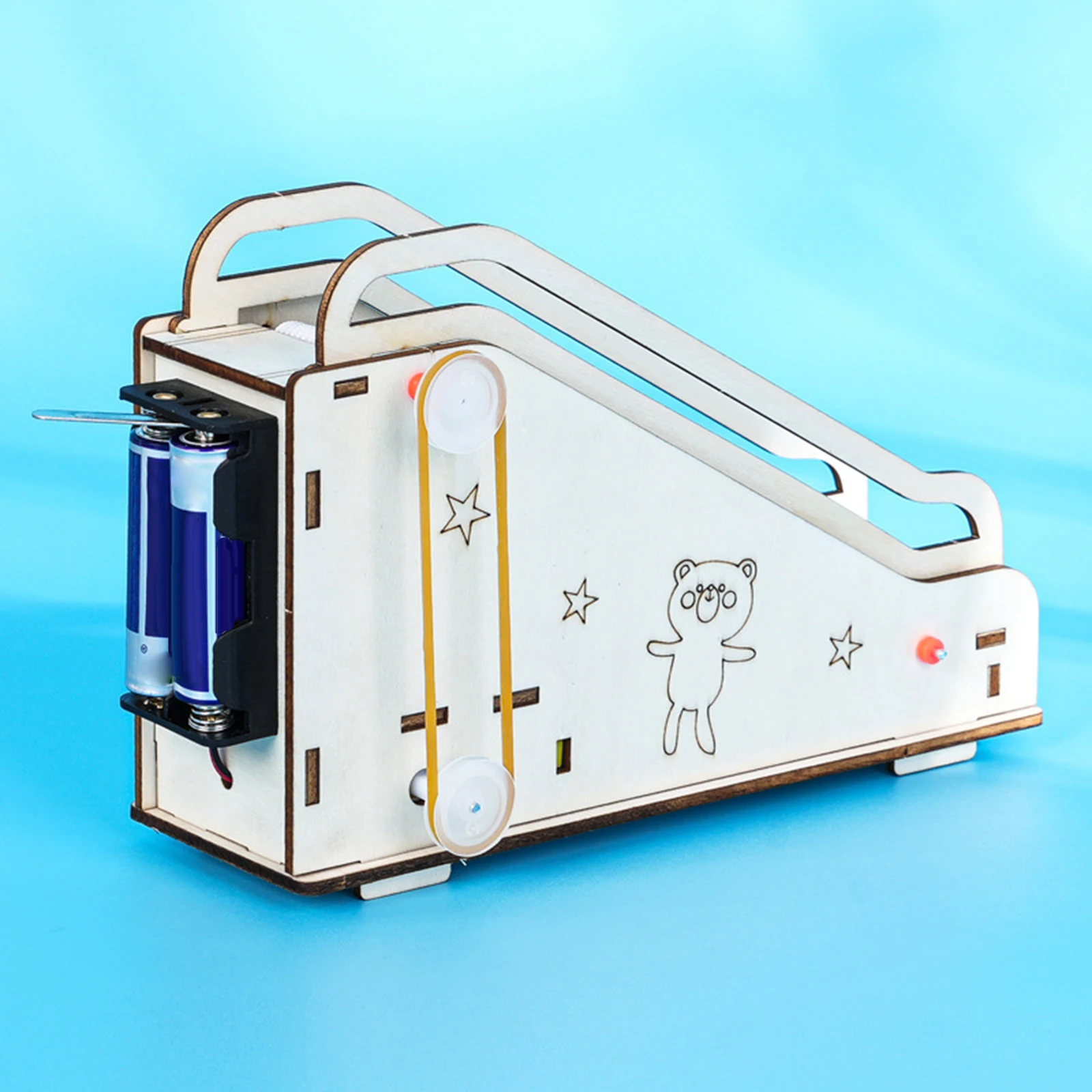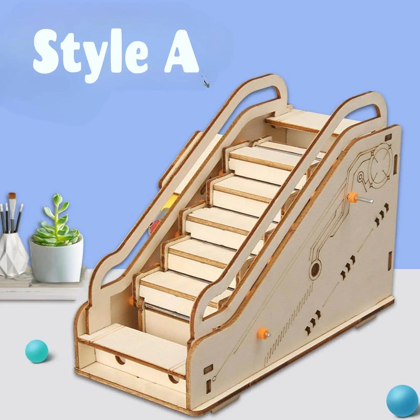3D Wooden Mechanical Assembling Toys Escalator DIY Manual Science Experiment Puzzle Educational Model Mini Escalator Model