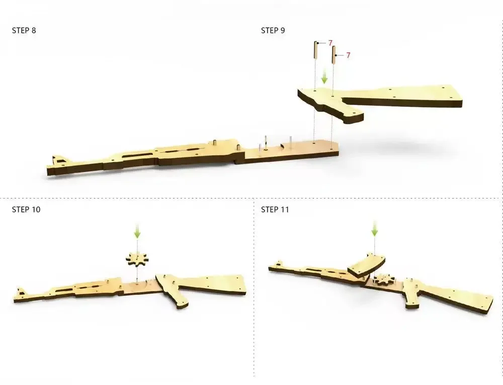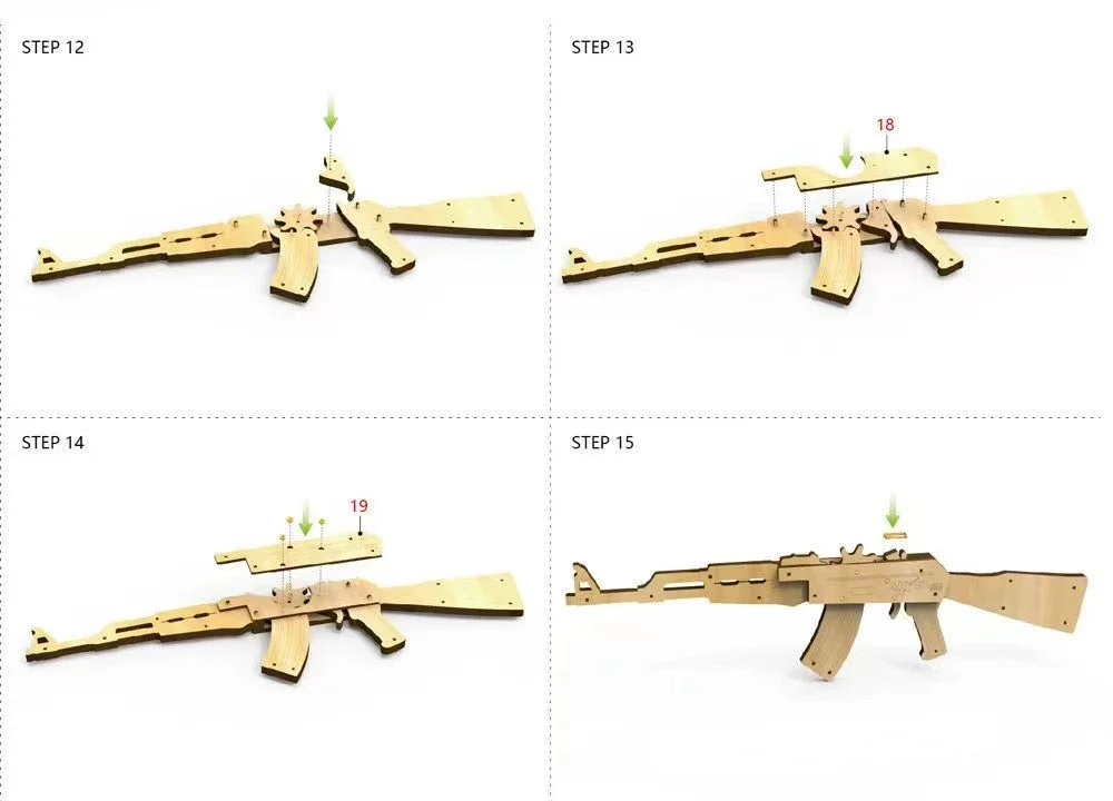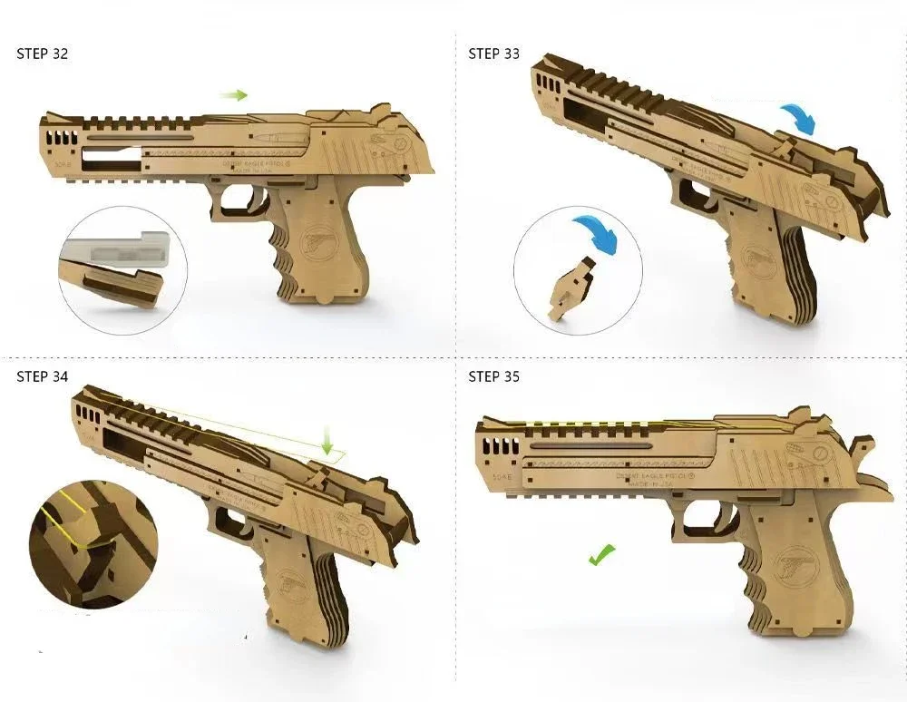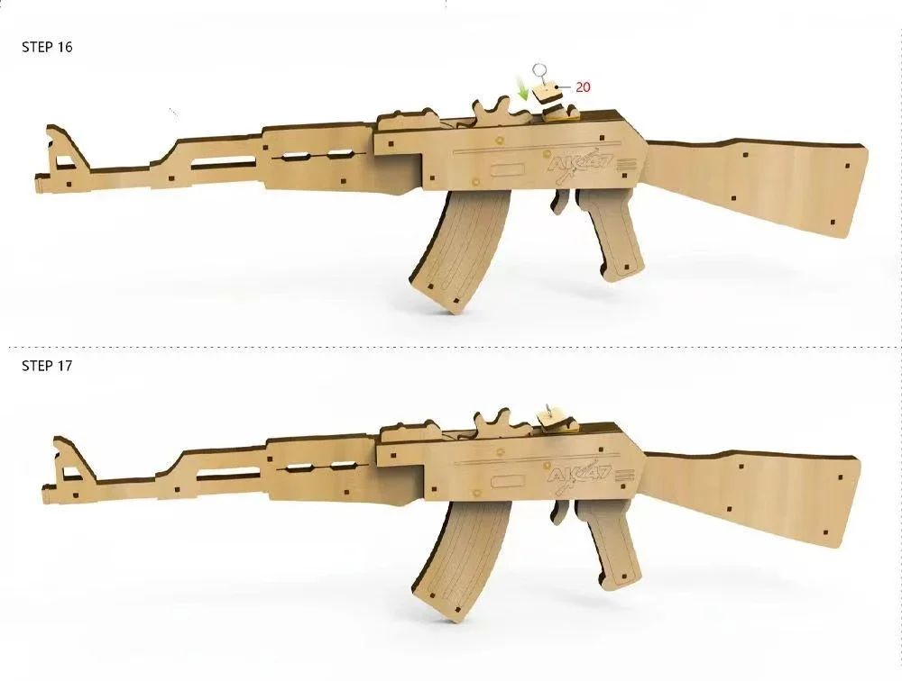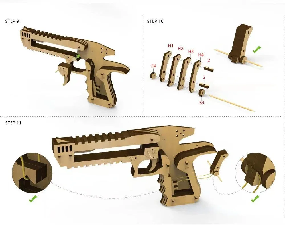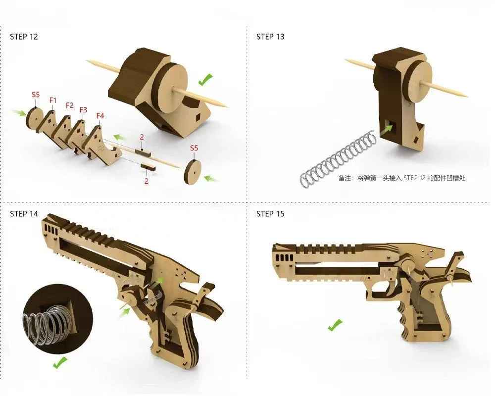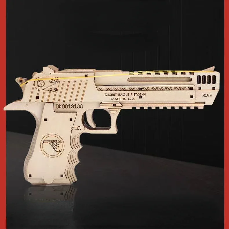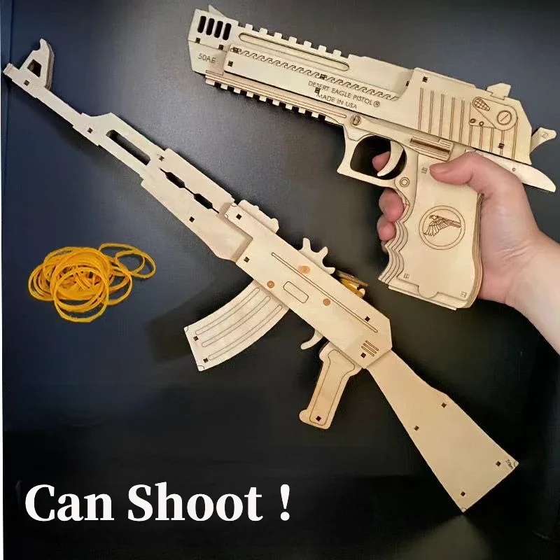 3D Wooden Mechanical Guns Shooting Models Building Block Assemble Outdoor Sport Puzzle Toy for Children Creative Gift