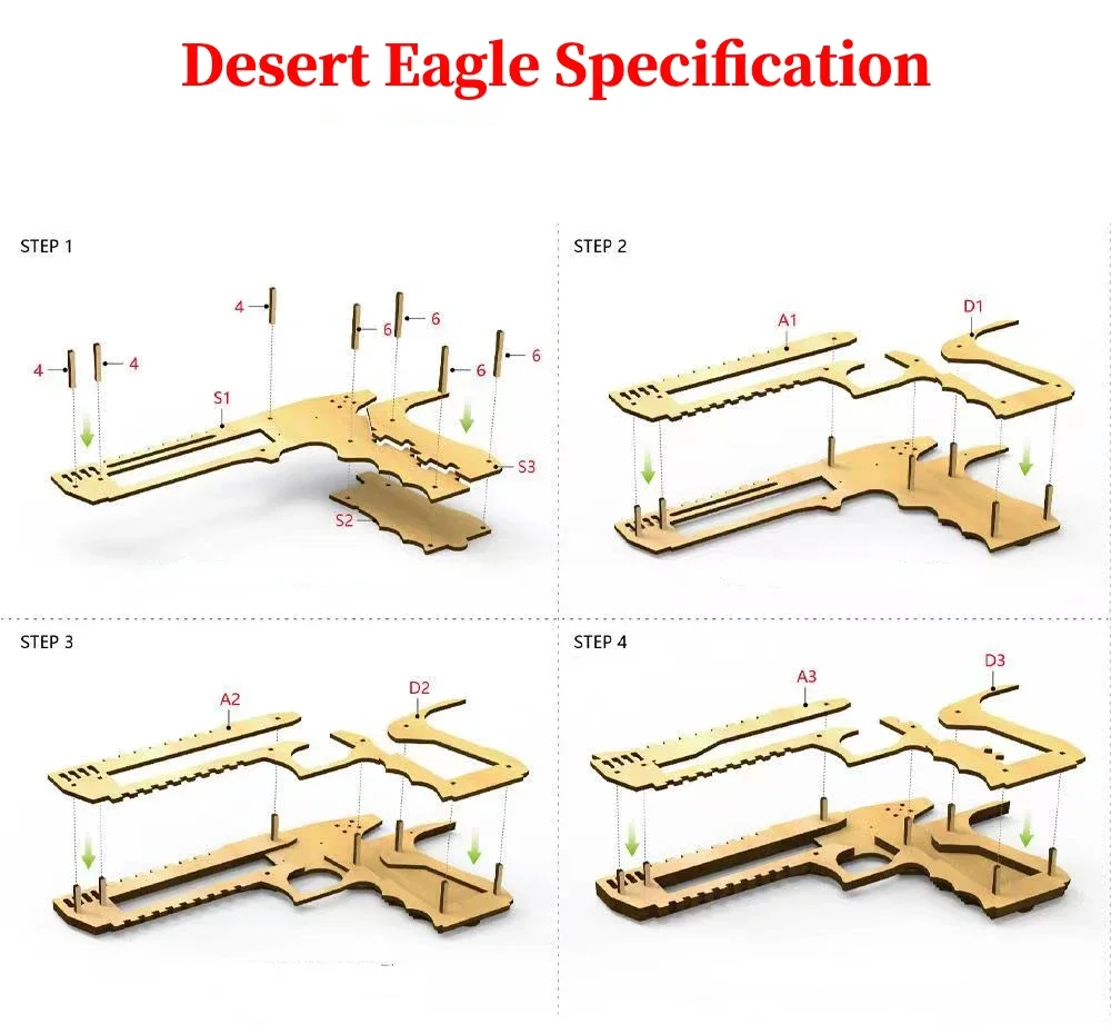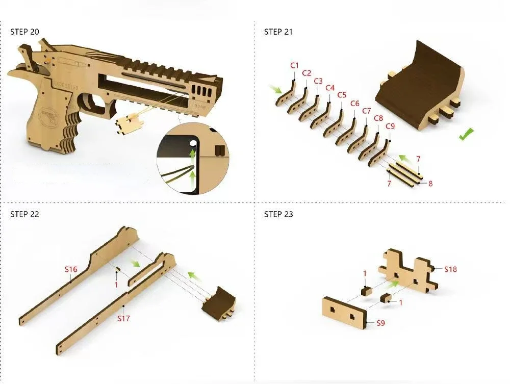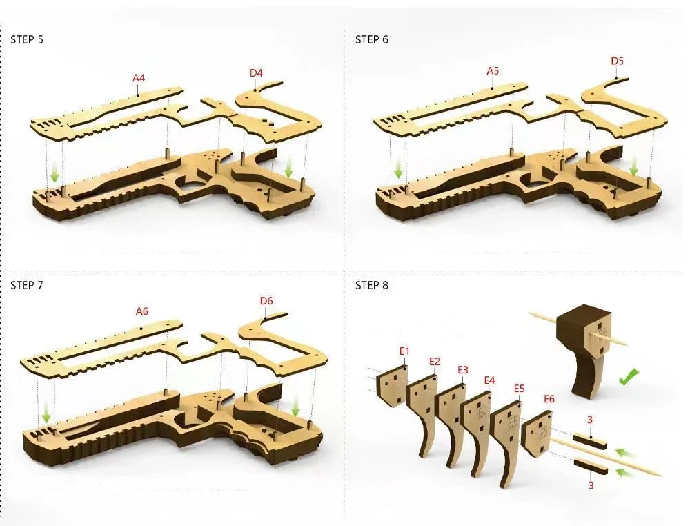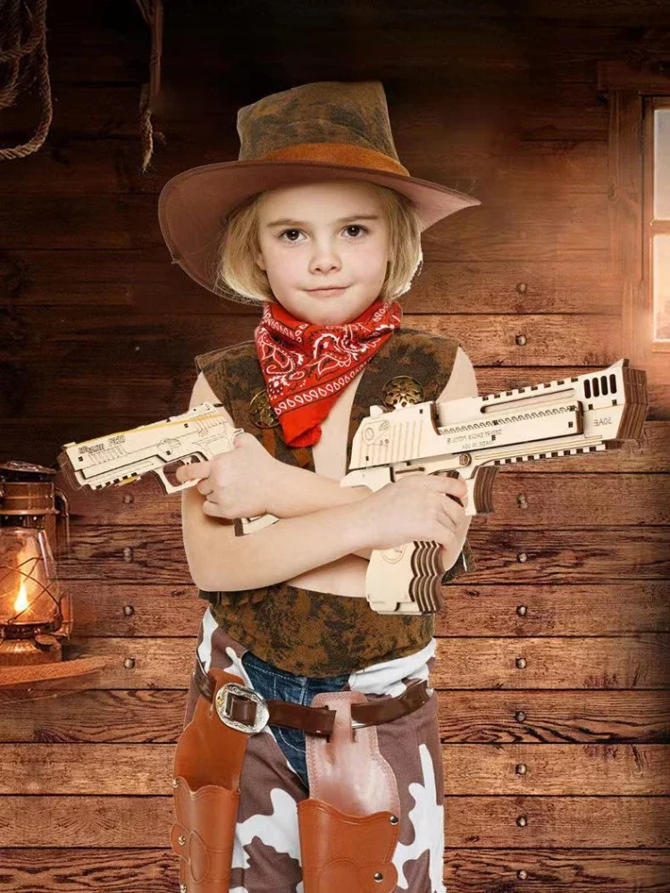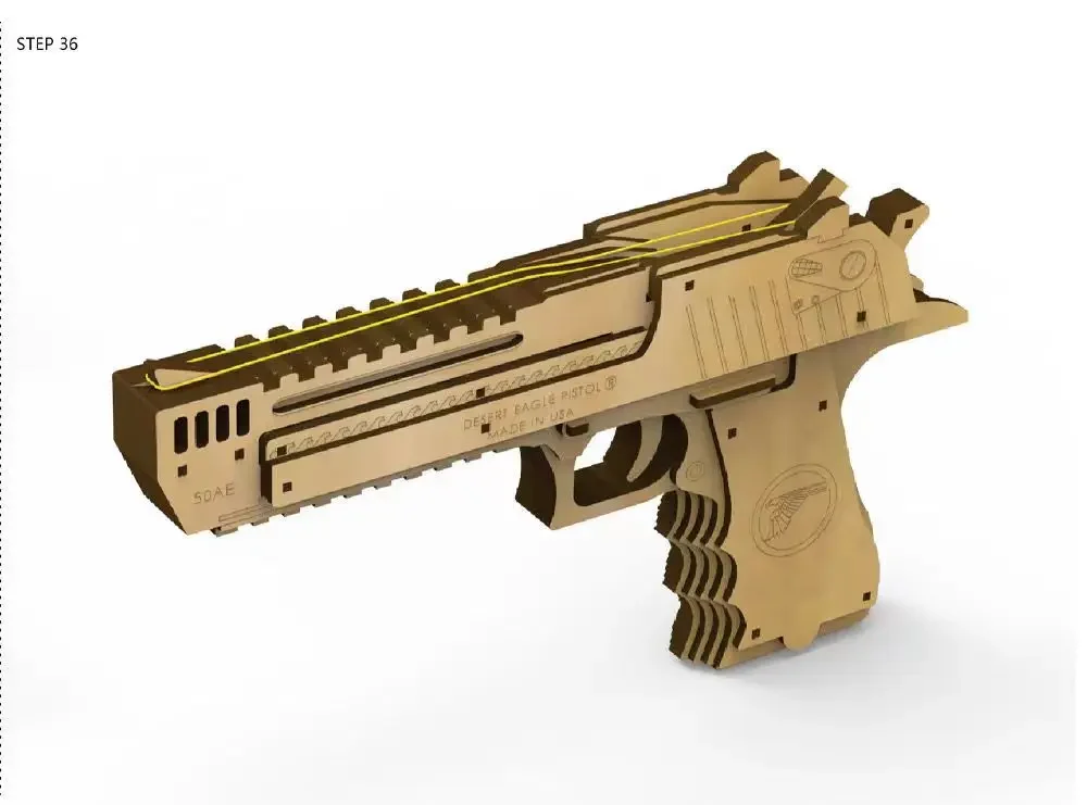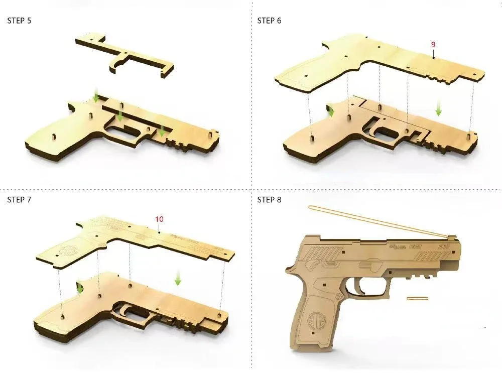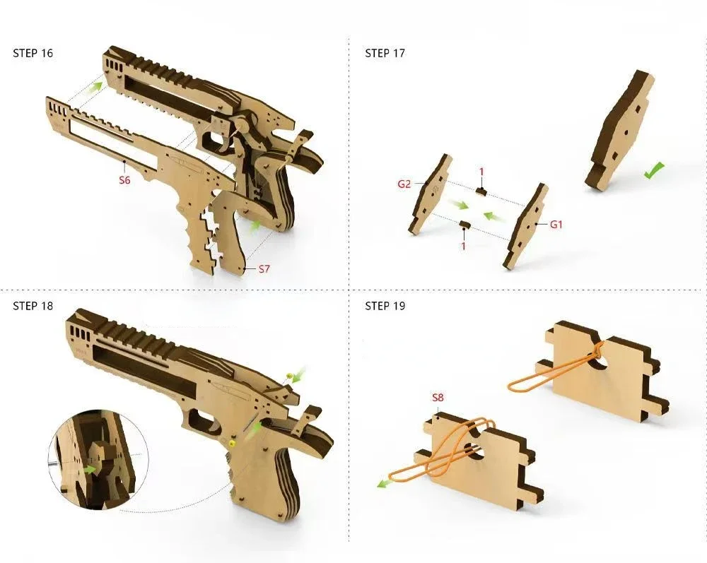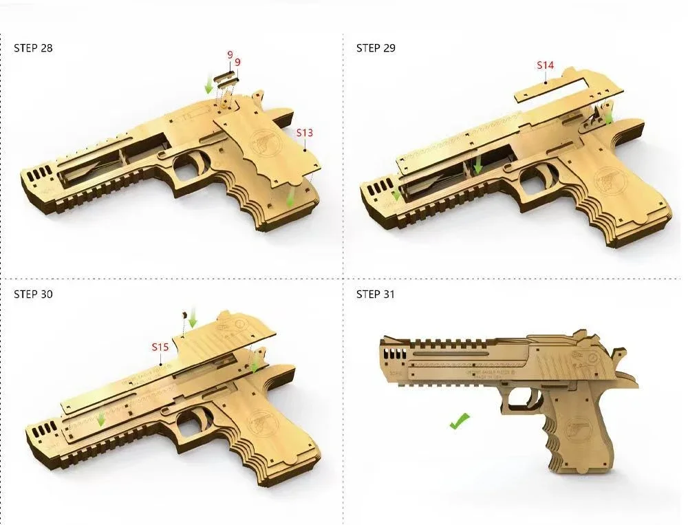 3D Wooden Mechanical Guns Shooting Models Building Block Assemble Outdoor Sport Puzzle Toy for Children Creative Gift