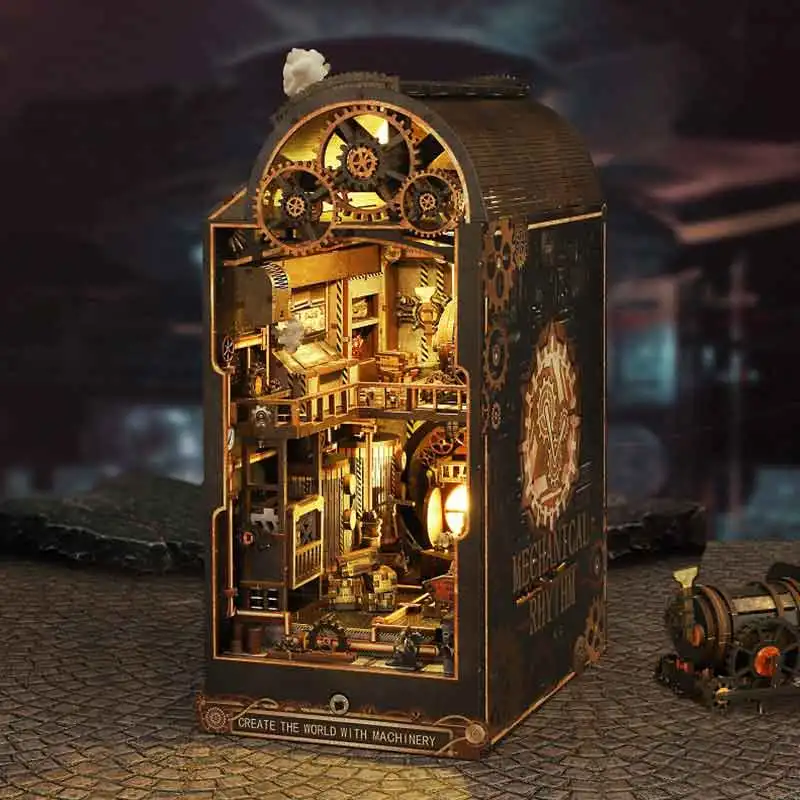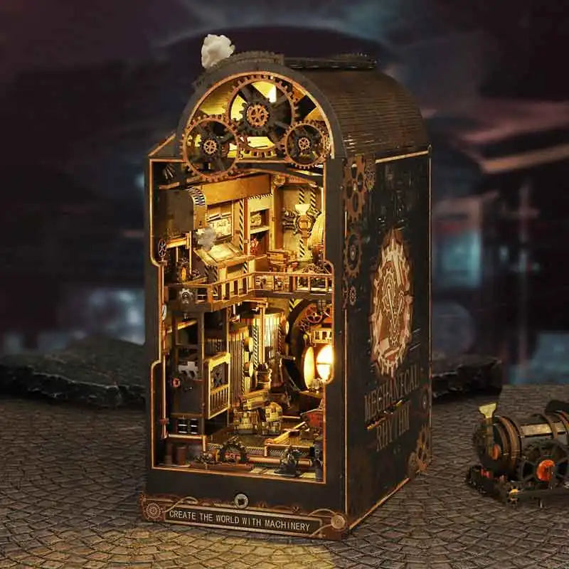 3D Wooden Puzzle Mini Doll House DIY Book Nook Kit Assembly Model Building Bookend Toy Bookshelf Insert Decor With LED Xmas Gift