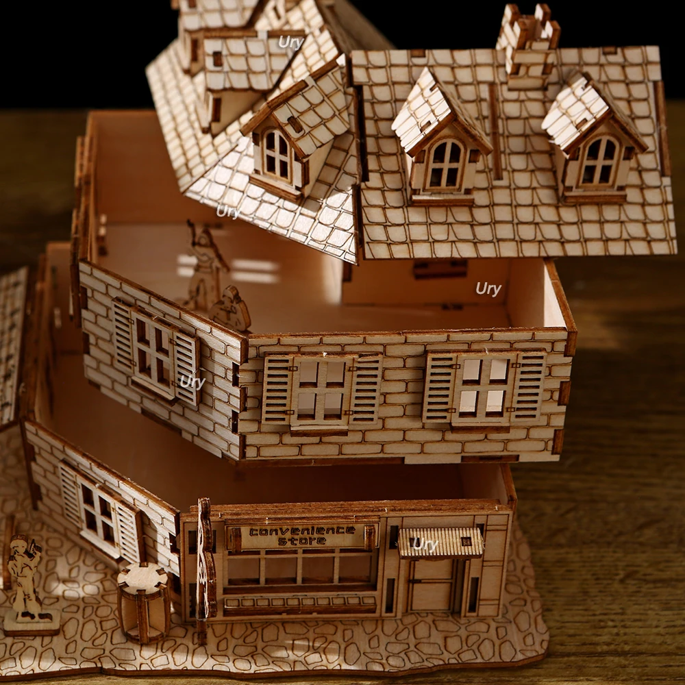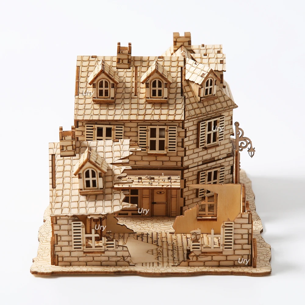 3D Wooden Puzzle WW2 War City Postwar Handmade Mechanical Assembly House Model DIY Kits Toys Desk Decoration Gifts For Kids