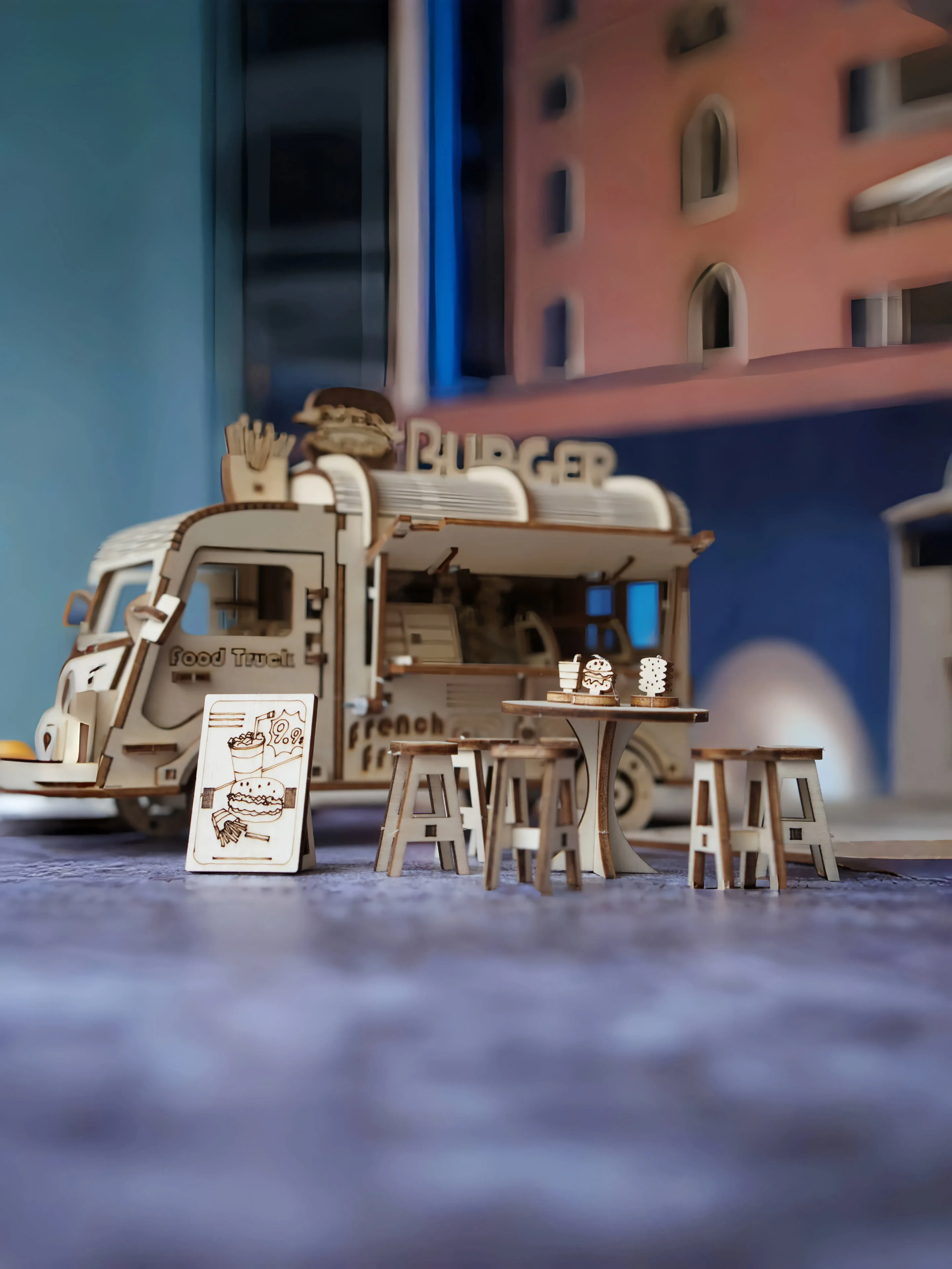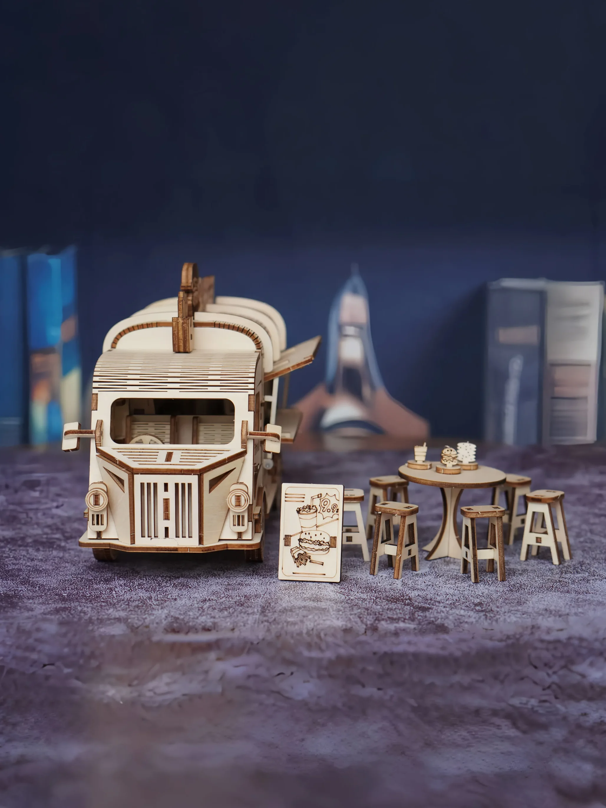 3D wooden puzzles, fast food truck models, handmade truck, bus, and car models, DIY toy ornaments and gifts for family