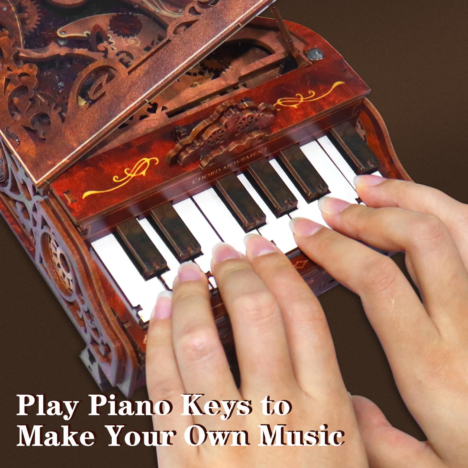 - Playable Piano Model Kit - Discover the joy of playing a real piano by assembling this intricate 3D wooden puzzle. When you play the piano, its gears turn in time with the music. Not only a beautiful decor piece, but it also plays a charming melody. Perfect for music lovers and puzzle enthusiasts alike.