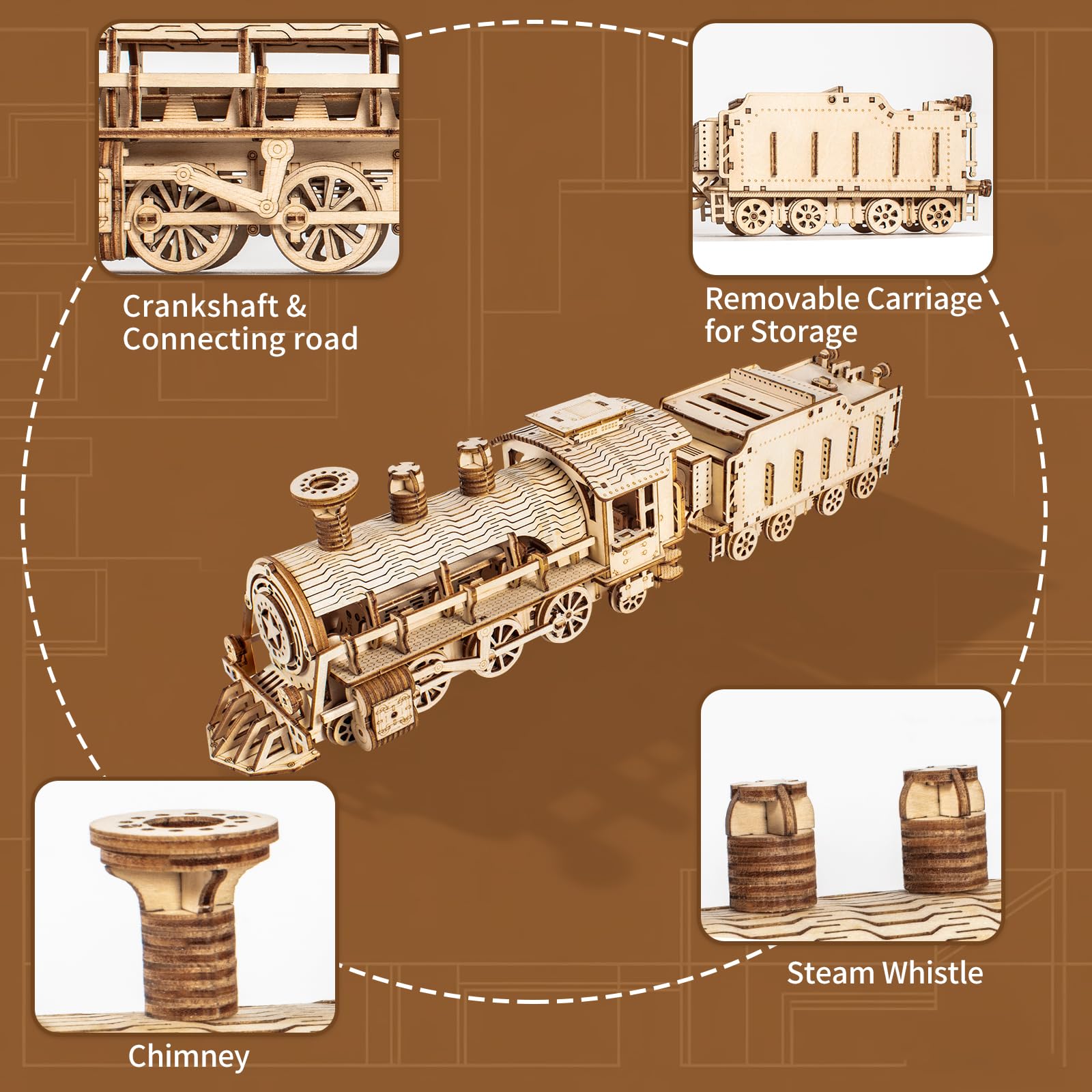 3D Wooden Puzzles for Adults, DIY Mechanical Model Kits for Adults and Kids to Build, Creative Gift for Women or Men Birthday, Christmas (Mechanical Train)