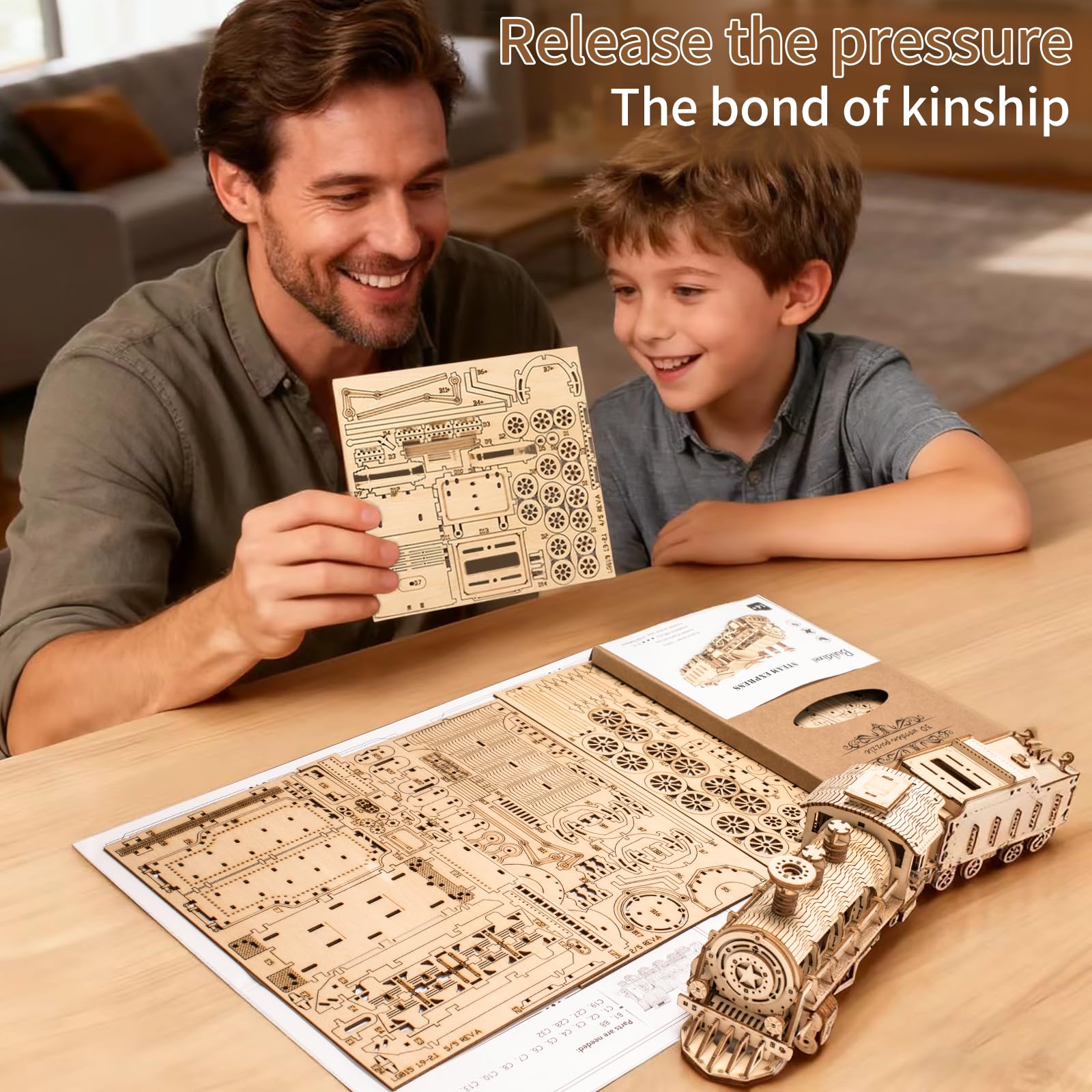 - 【No Glue Needed】Unique Mechanical 3D Puzzle, laser-cut ply wood,no tonxic,environmental friendly, smooth wooden board. All pieces are pre-cut, no glue needed. The interlocking mechanisms are pretty ingenious.