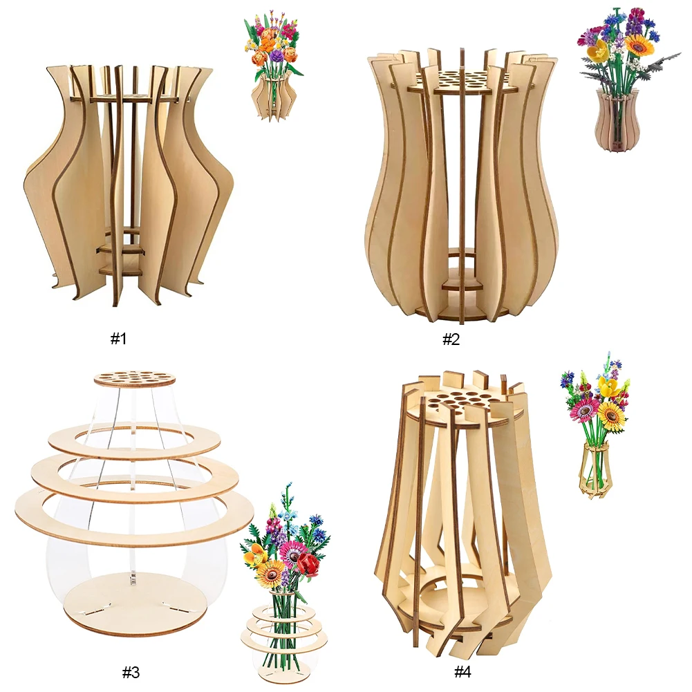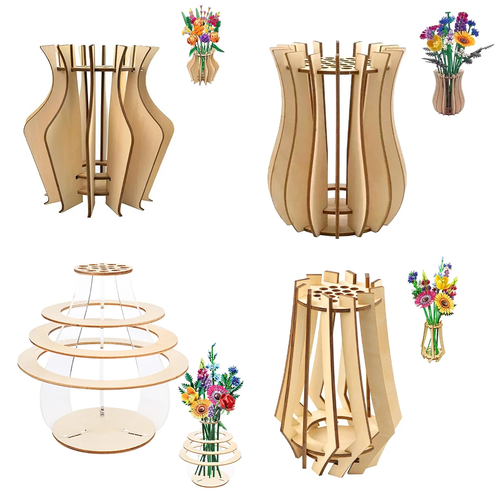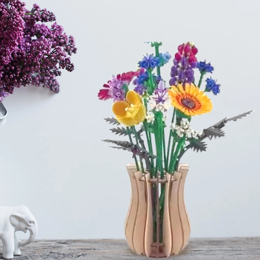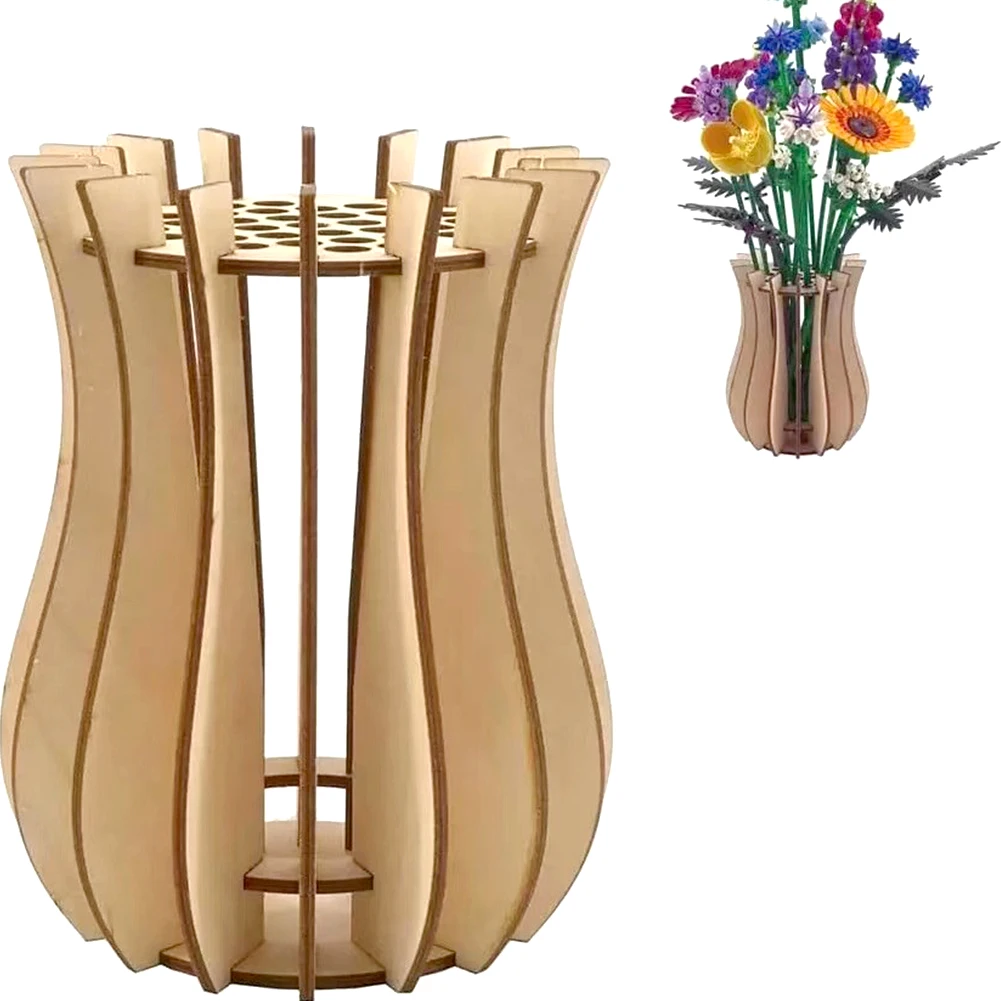 Bouquet Vase 3D Wooden Building Blocks Model Wood Stereo Stitch Puzzle Models Kit Gifts for Women Men