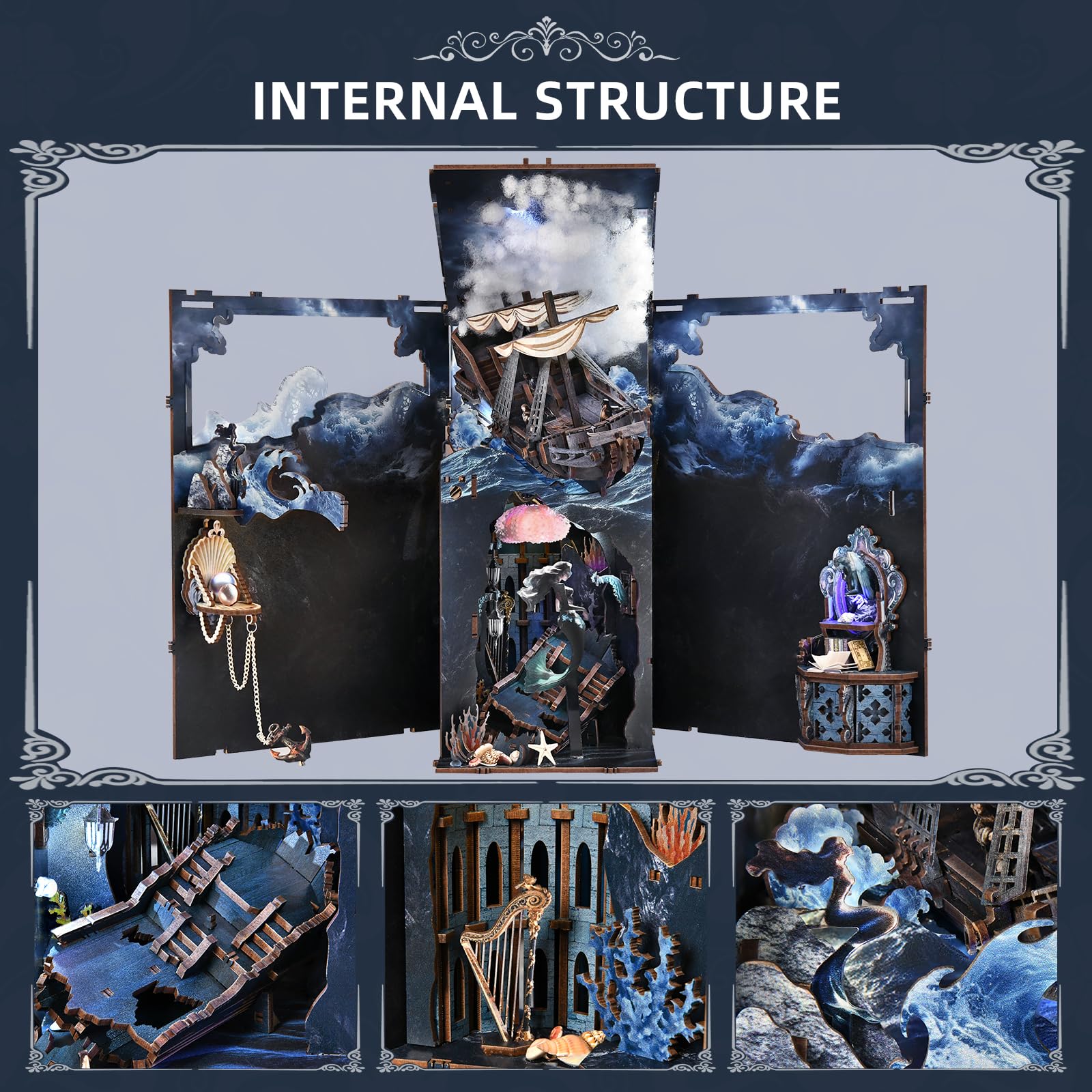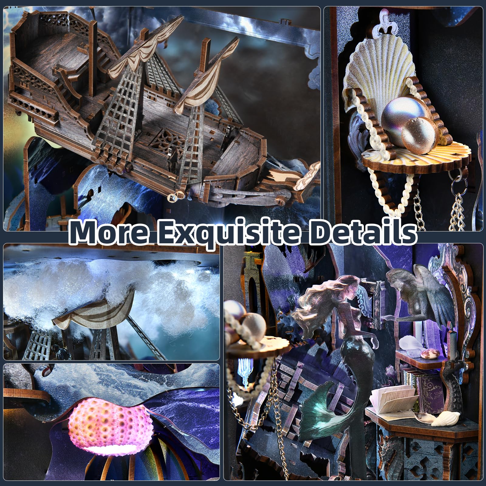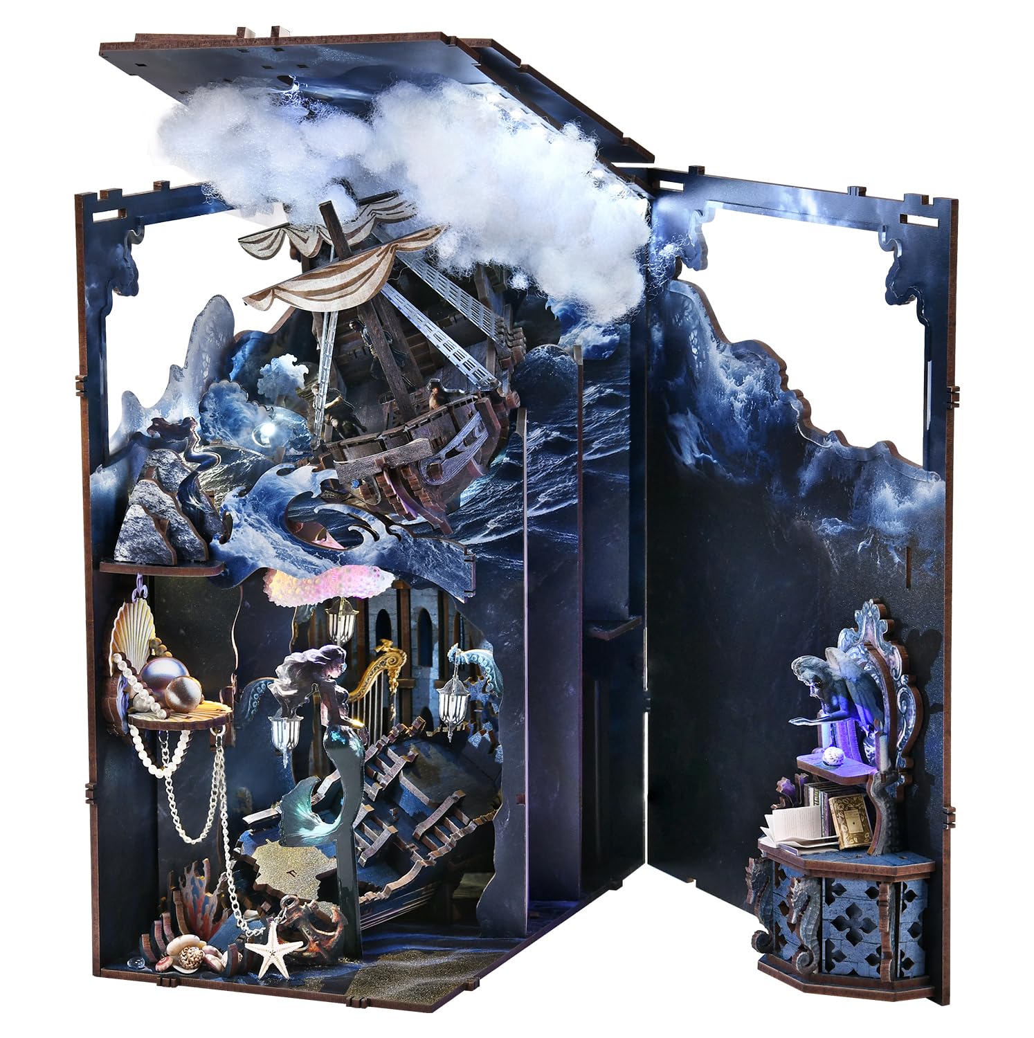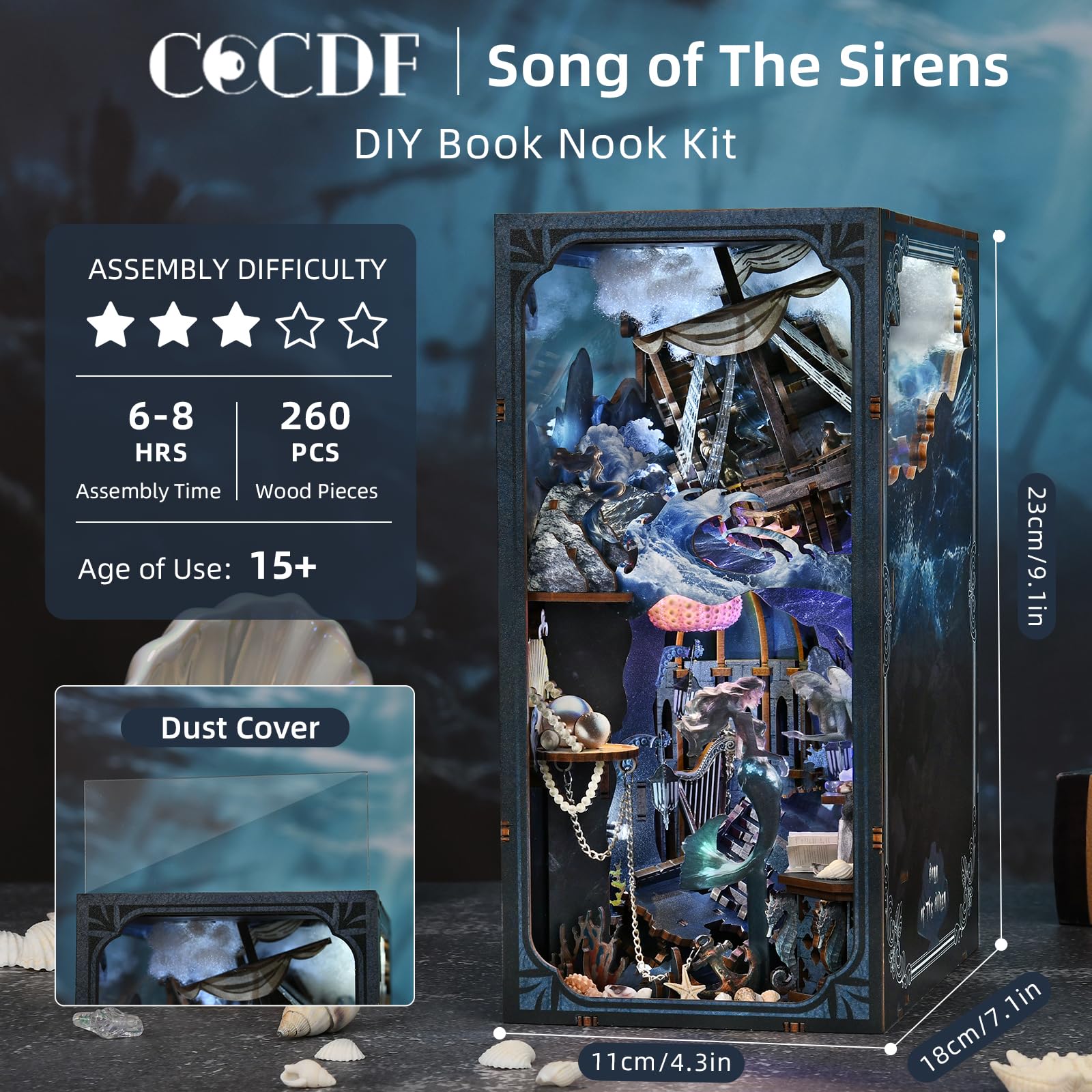 CCCDF Book Nook Kit, DIY Miniature Dollhouse Kit Tiny House Mini Booknook Craft Bookshelf Decor, 3D Wooden Puzzles for Adults, Gifts for Book Lovers (Song of The Sirens)