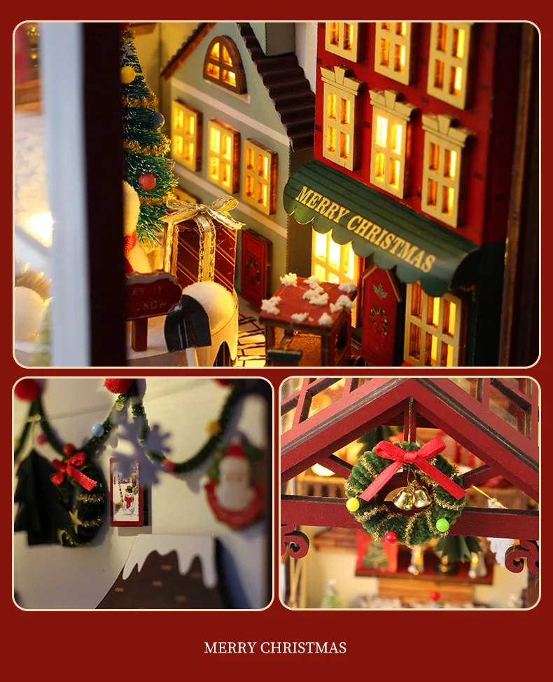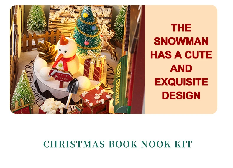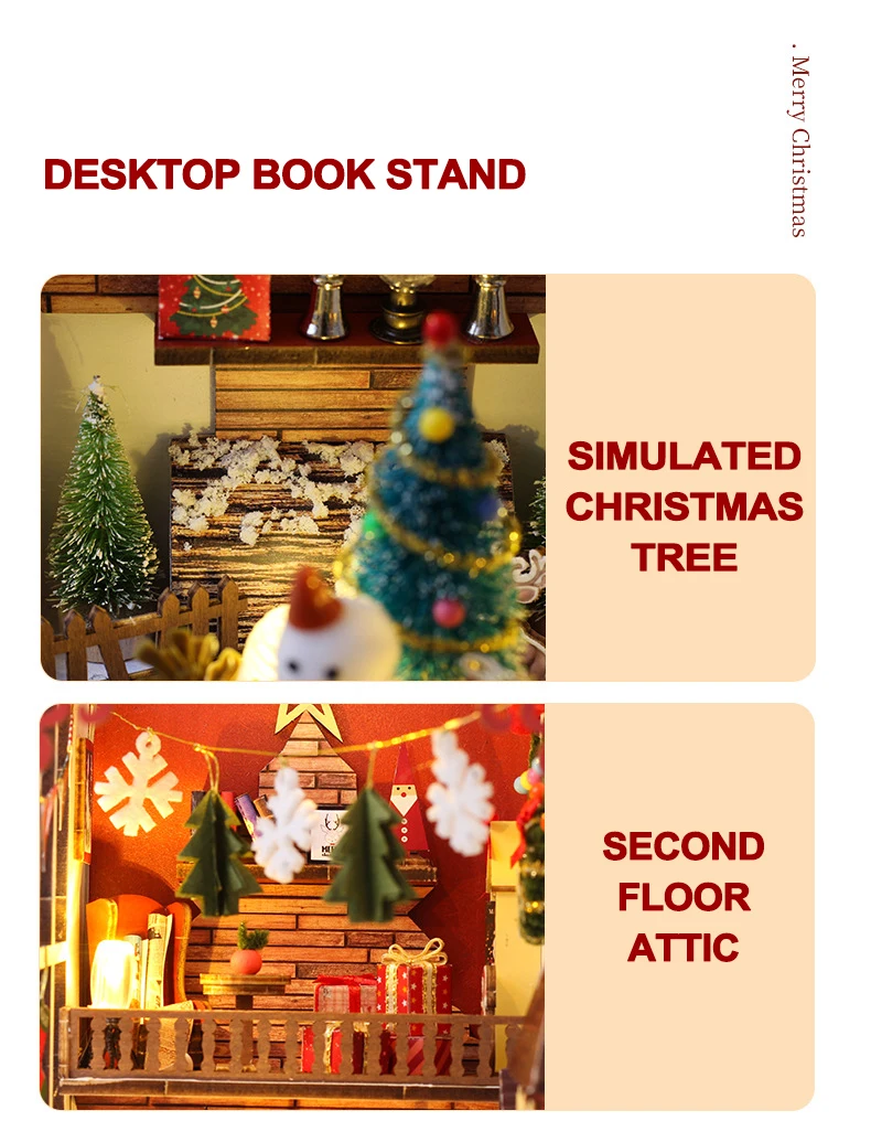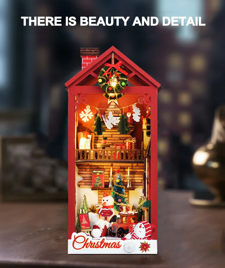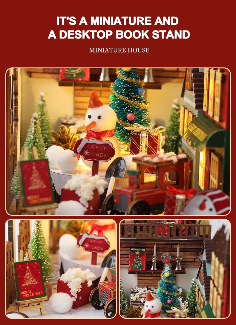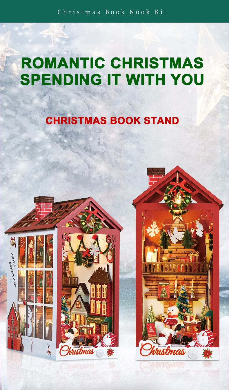 Creative 3D Christmas Book Stand Assembled Building Kits Model with Lights Wooden Puzzles Desktop Decoration Toys Gifts for Kids