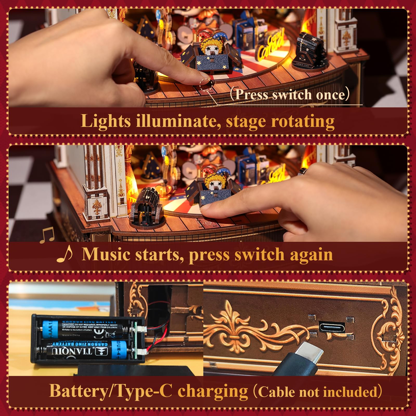 - Unique Gift Idea for Readers & Crafters - No one would refuse such a creative gift! This miniature house music box kit for adults is more refined than an ordinary handicraft. A must-have 3d puzzle kit for puzzle lovers, theater fans and collectors. Surprise a friend with this rotating music box wooden theater kit—a unique gift for birthdays, holidays, Christmas, Thanksgiving day, Valentine's Day.