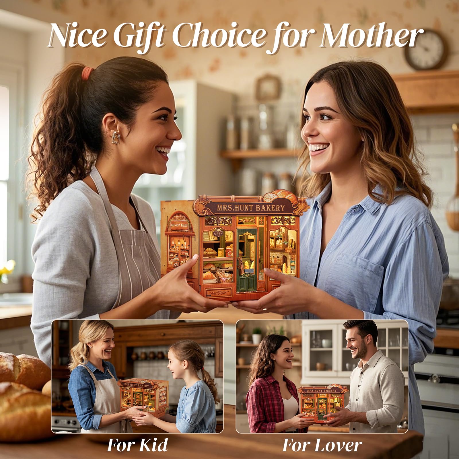Cutefun Book Nook Kit - DIY Miniature House Dollhouse Kit, Book Nook Kits for Adults, Bookshelf Insert Bookend with LED Light for Teens and Adults (Mrs.Hunt Bakery)