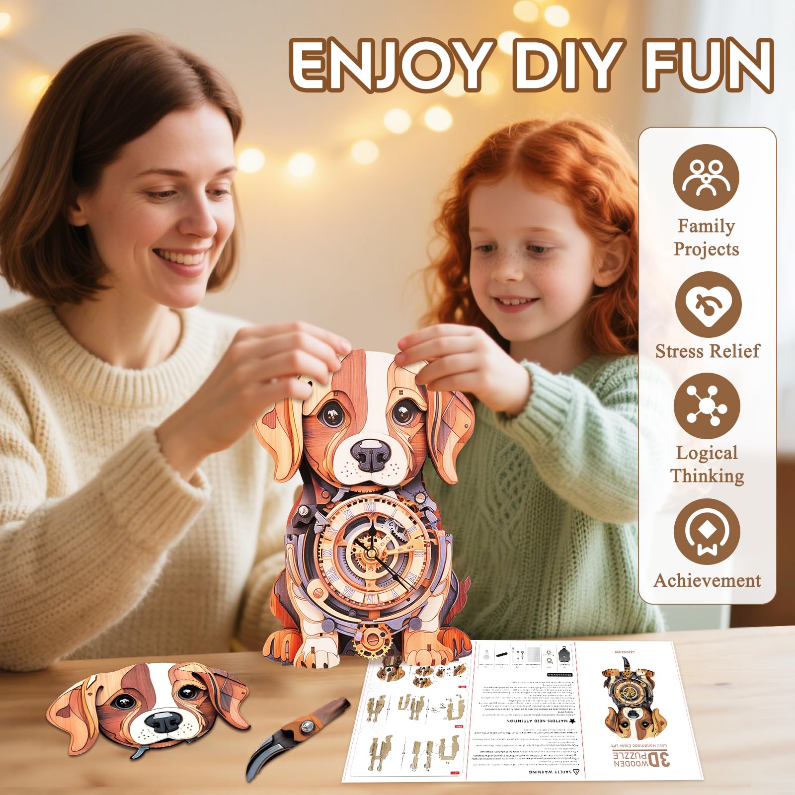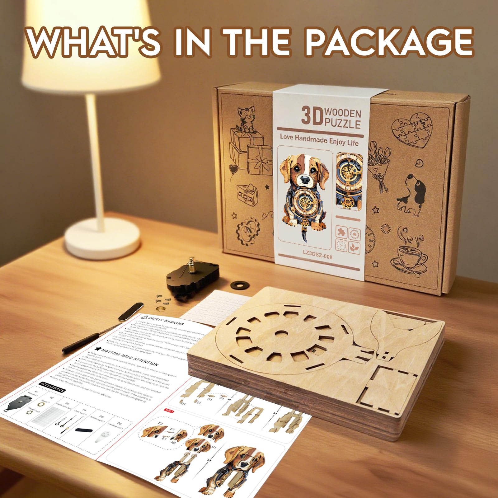 - 【3D Puzzles for Adults】Build a stunning mechanical clock with this intricately designed DIY clock kit, featuring a three-dimensional beagle motif and Roman numeral dial. Perfect for hobbyists seeking challenging 3D puzzles that combine artistry with engineering.