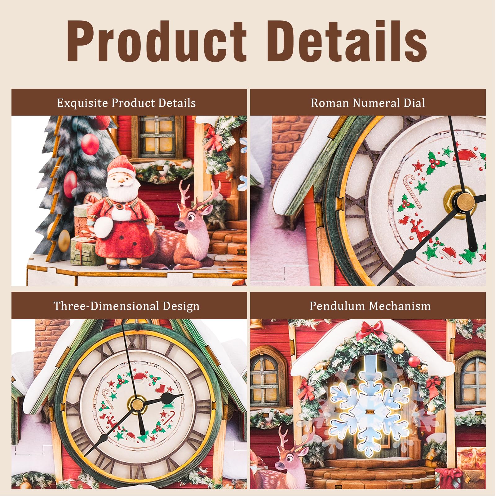 - 【3D Puzzles for Adults】Build a stunning mechanical clock with this intricately designed DIY clock kit, featuring a three-dimensional Christmas house motif and roman numeral dial. Perfect for hobbyists seeking challenging 3D puzzles that combine artistry with engineering.