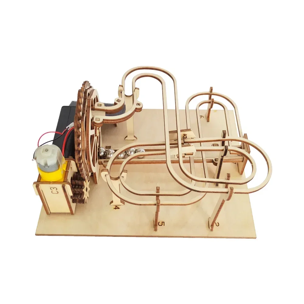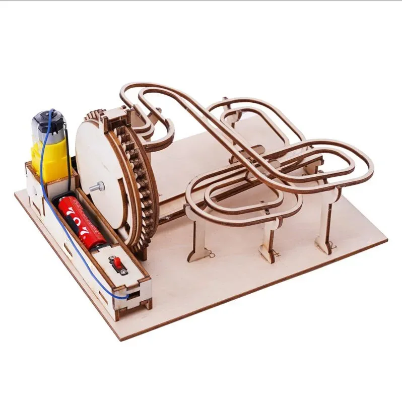 DIY 3D Wooden Marble Run Kit Build Mechanical Gears Steam Powered Science Experiment Educational Toy for Children and Teens