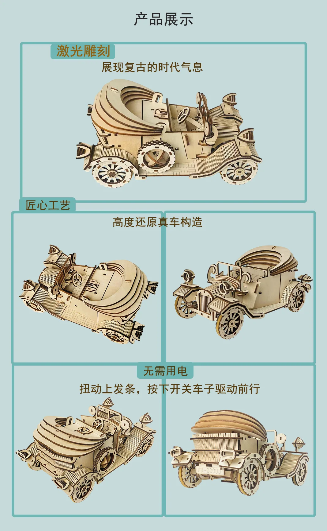 DIY Retro Convertible Car Model 3D Three-dimensional Wooden Puzzle Creative Puzzle Assembly Toy Ornaments