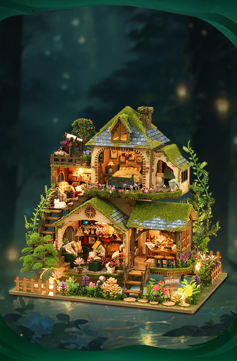 DIY Wooden Miniature Model Kit Forest Adventures Casa Doll Houses 3D Puzzle Dollhouse With Furniture for Friends Christmas Gifts