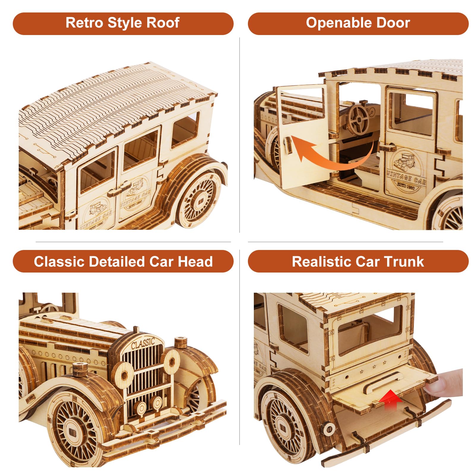 Hallisun 3D Wooden Puzzle for Adults, Mechanical Classic Car Puzzle, DIY Vintage Vehicle Model Building Kit Handicraft Wood Craft Hobbies Toy, Birthday for Hobbyist 14+ Family Women Men, 187 Pcs