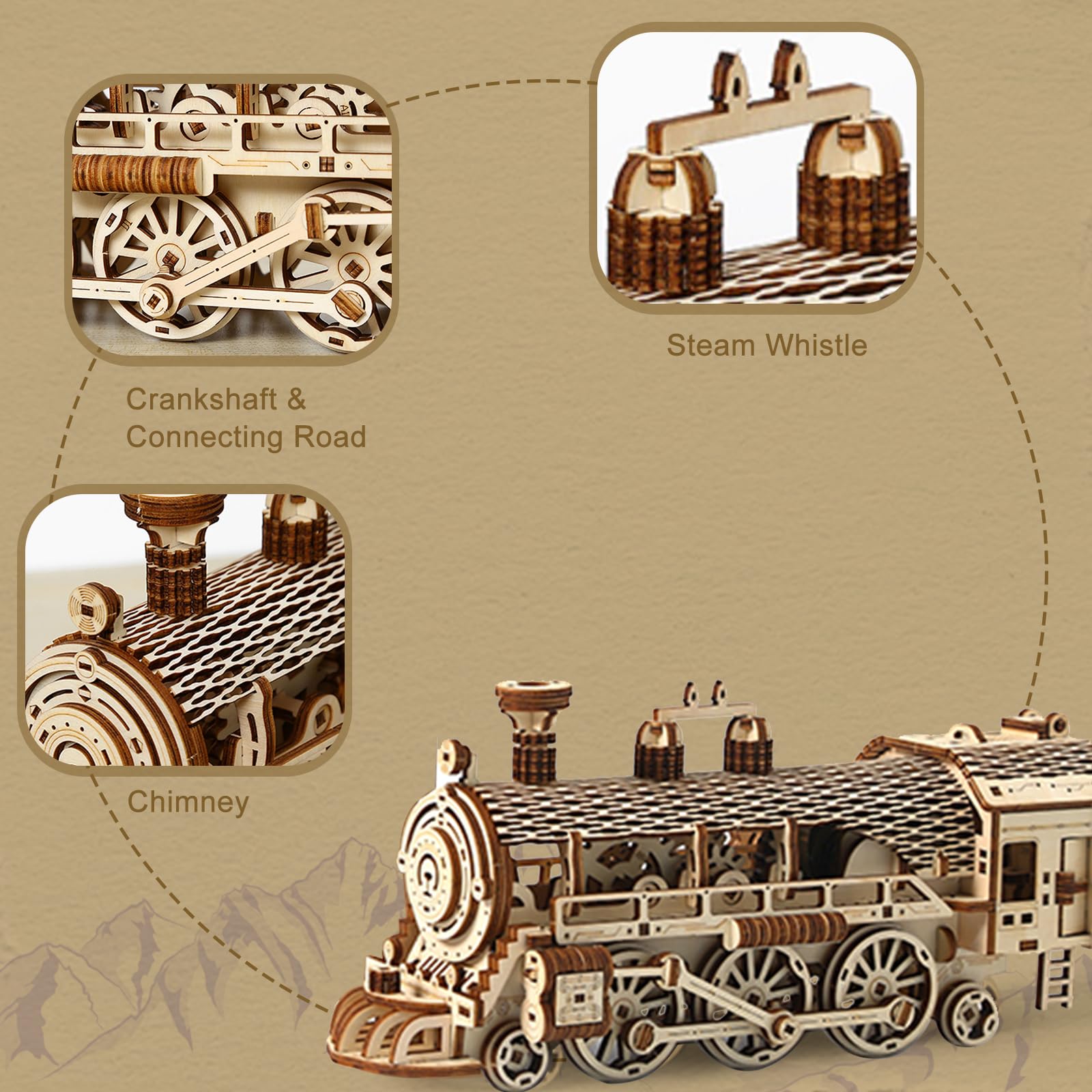 Hallisun 3D Wooden Puzzle for Adults, Mechanical Steam Trains Puzzle, DIY Vehicle Model Building Kit Handicraft Wood Craft Hobbies Toy, Birthday for Hobbyist 14+ Family Women Men, 361 Pcs