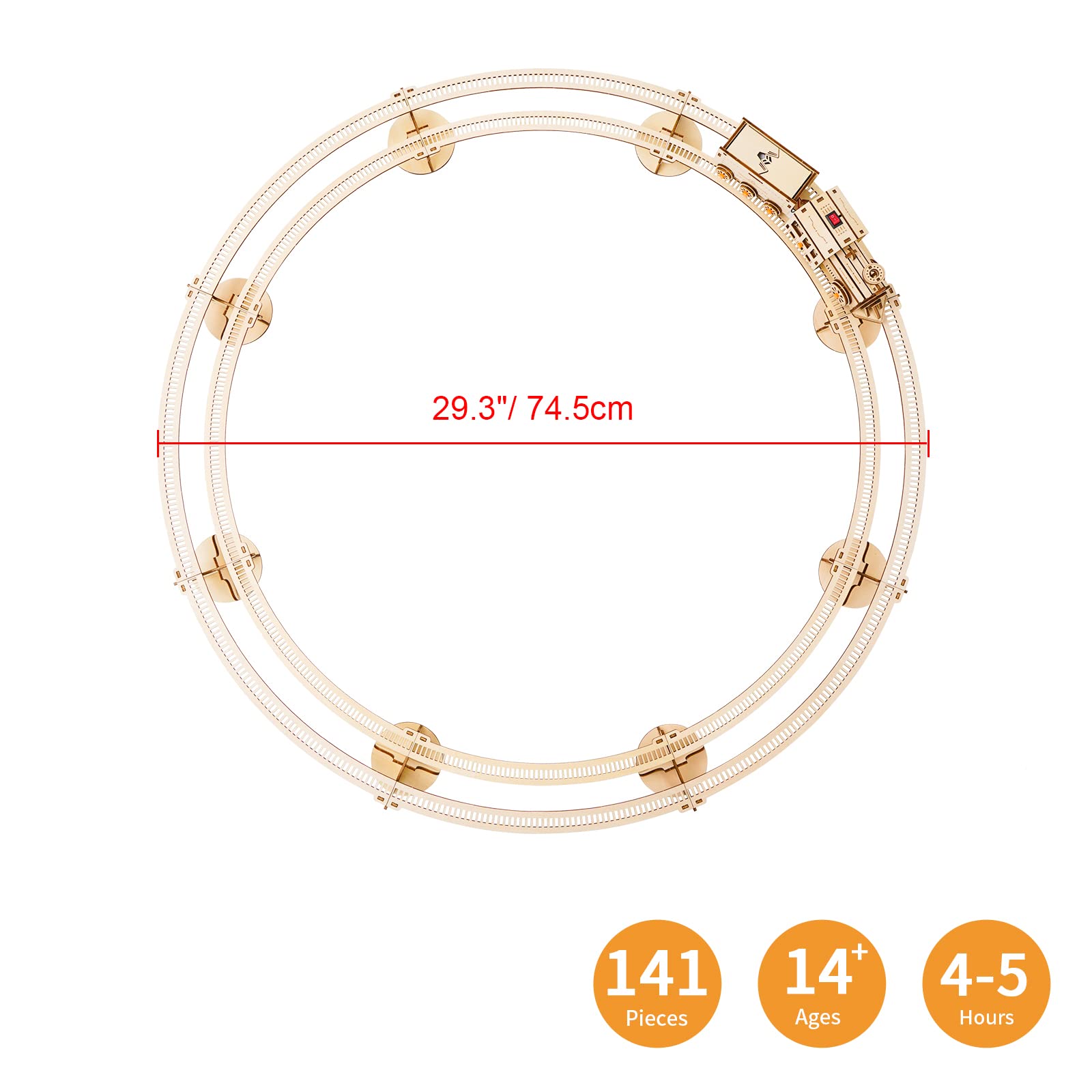- 💡【EASY SELF-ASSEMBLY】: This wooden locomotive model includes 141 wooden puzzle pieces, but the building is accessible for adults and kids! Finished product size: 29.3 x 29.3 x 5.9 inches / 745*745*152mm.