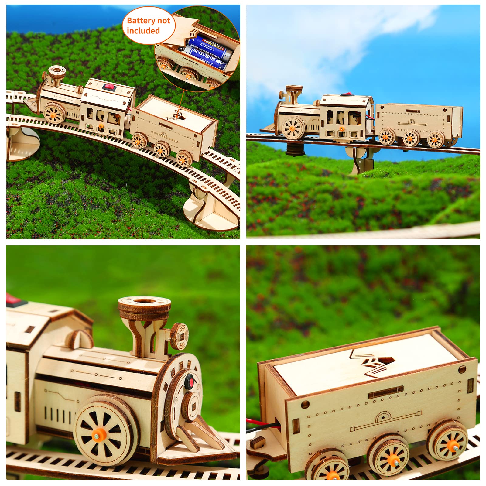 - 👍【INCREDIBLE DIY EXPERIENCE】: 3-D wooden cool train with rail DIY assembly brain teaser model kit puzzles are fun and easy to assemble. Great to get people off electronics. Building a model train will draw out and propel your child’s ability to plan and build their own structure or vehicle like a true architect or engineer. Brain teasers for adults and kids have never been so entertaining!