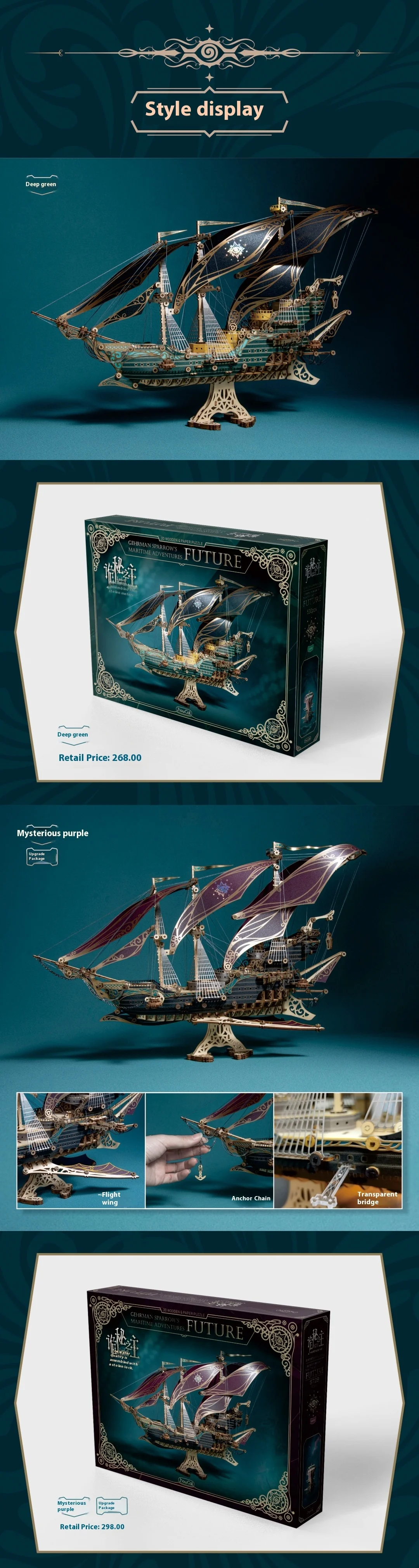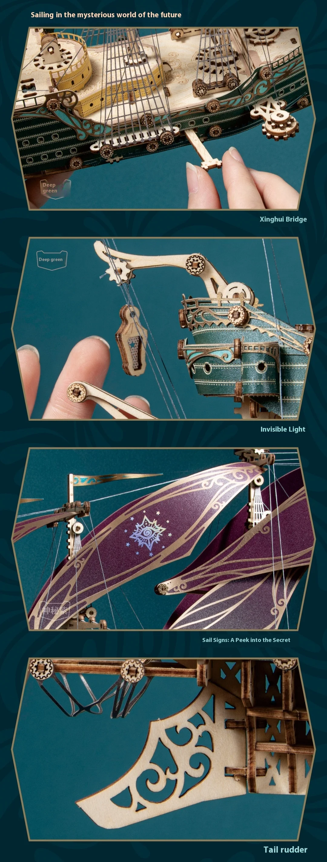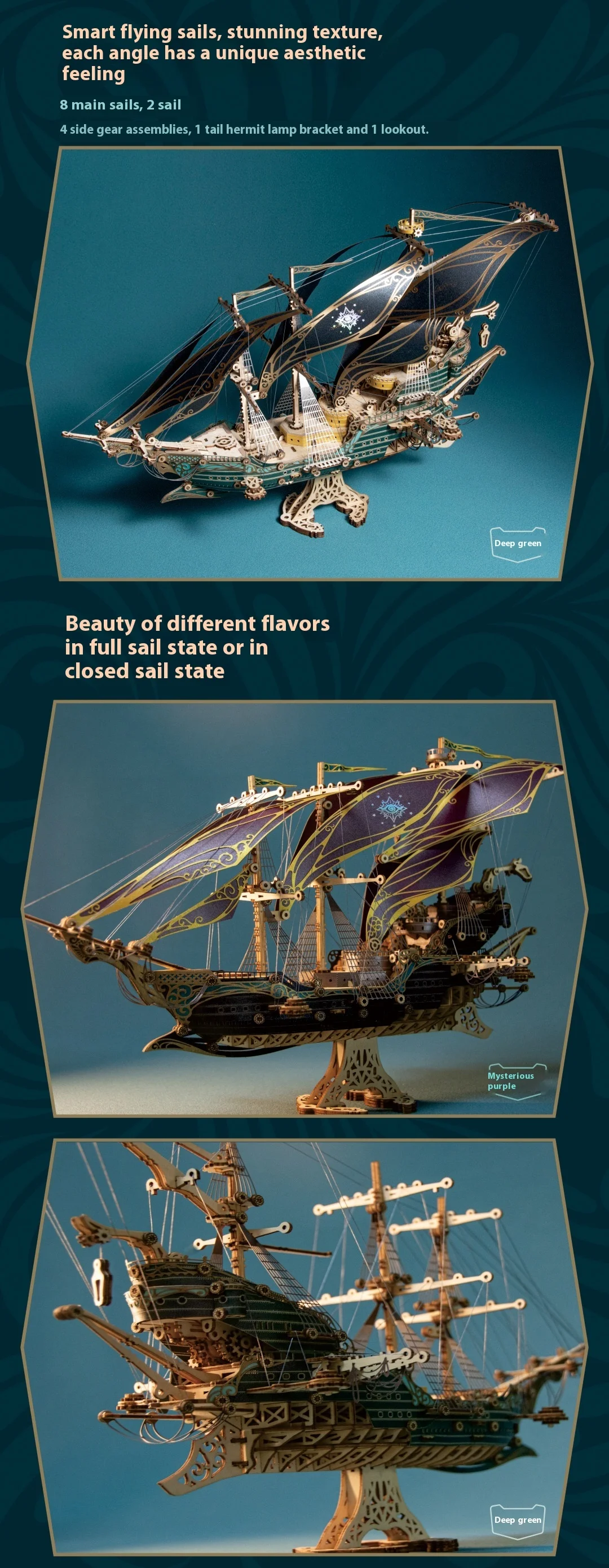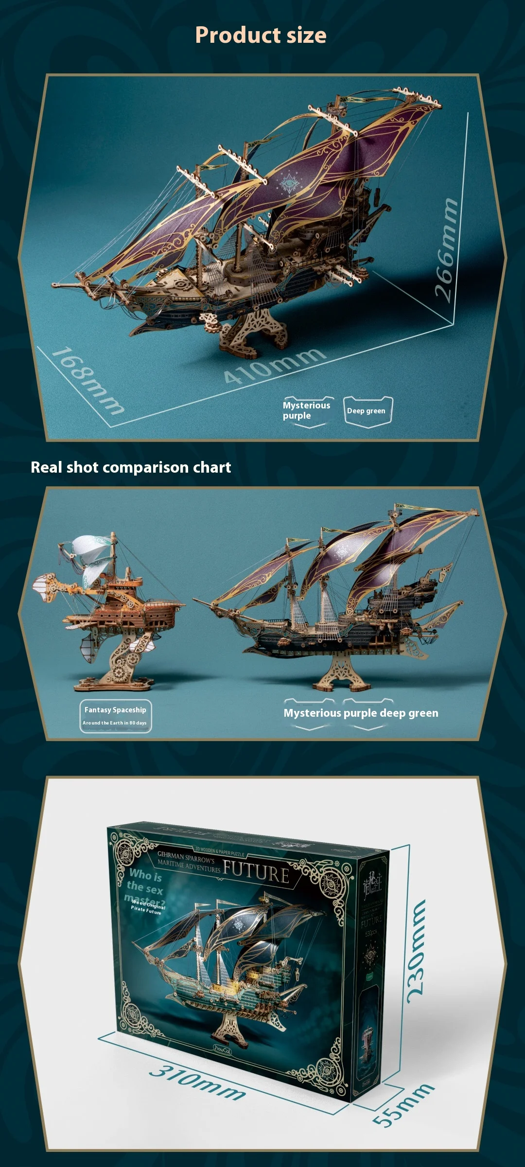 Master Of Mystery Future Pirate Ship Wooden Assembly Model Desktop Decoration Friend'S Birthday Gift Boutique Gift Box Set