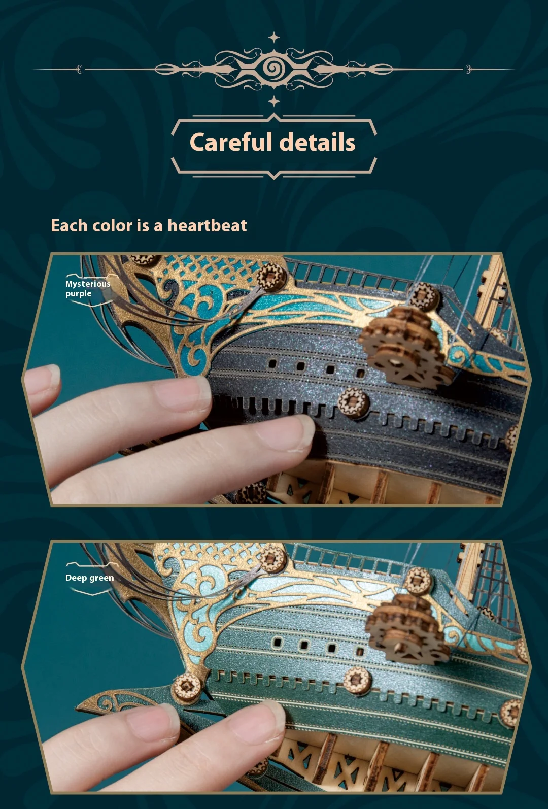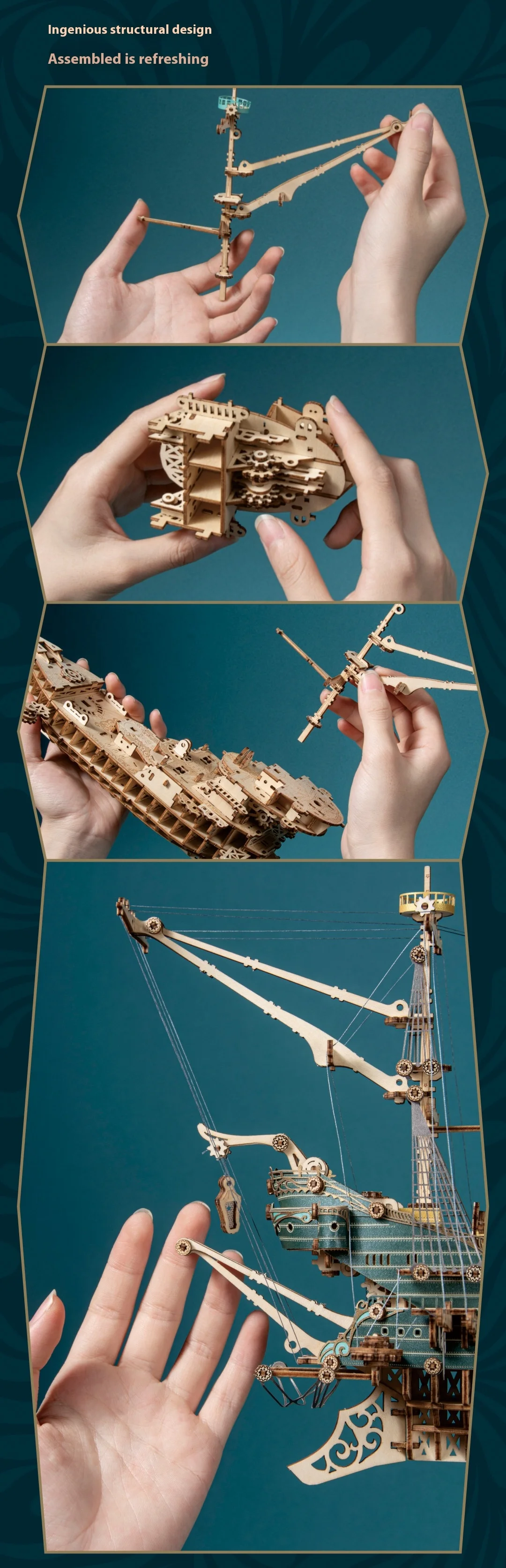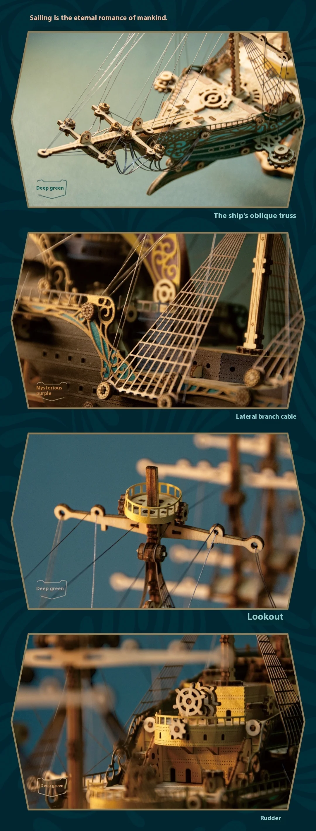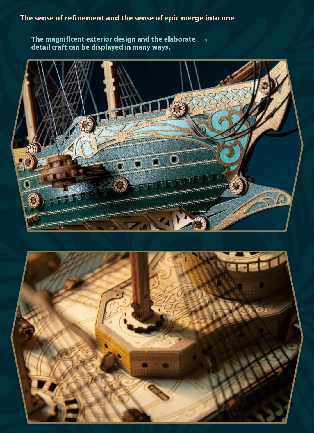 Master Of Mystery Future Pirate Ship Wooden Assembly Model Desktop Decoration Friend'S Birthday Gift Boutique Gift Box Set