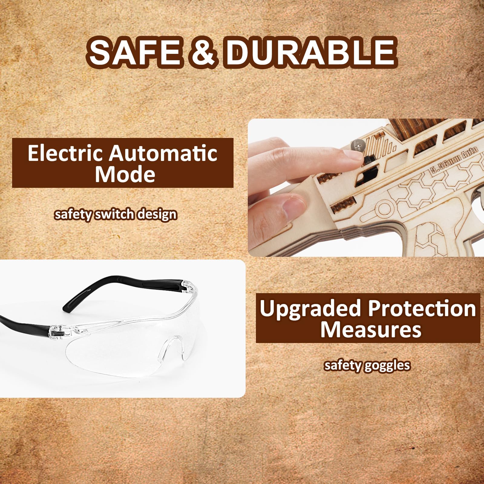 - 【Craftsmanship Builds & Safe Desgin】Our 3D wooden puzzle pistol comes with cool goggles, sanding pads, screwdriver, rechargeable USB, 4000 safe and clean water beads. The puzzle accessories with smooth and no burrs becasue we have top-notch cutting technology with extremely tight tolerances, we also offer sanding pads for you to polish edges that fit together nicely without glue. It is comfortable to play and DIY real solid wood material puzzles.