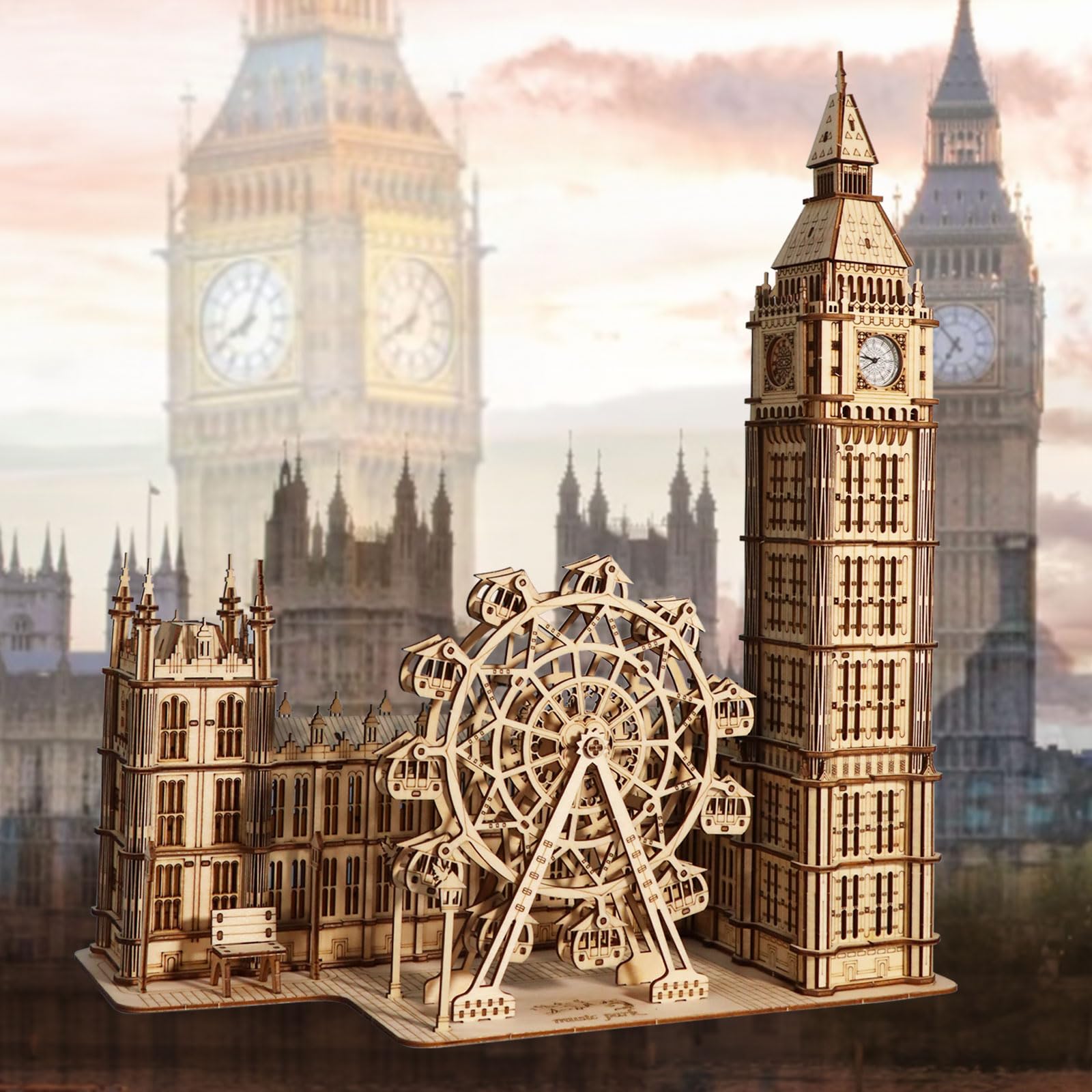 - 🌉【SPACE MAGIC WITH LIGHT & SHADOW】 Built-in LED lights: when powered, Big Ben windows and Ferris wheel cabins glow warmly—elevating this wooden building kits beyond a mere model to a “London miniature” for home decor. Placed in the living room/study, this 3d wooden puzzle brightens daily life with architectural art, perfect for those seeking wood building kits with aesthetic appeal.