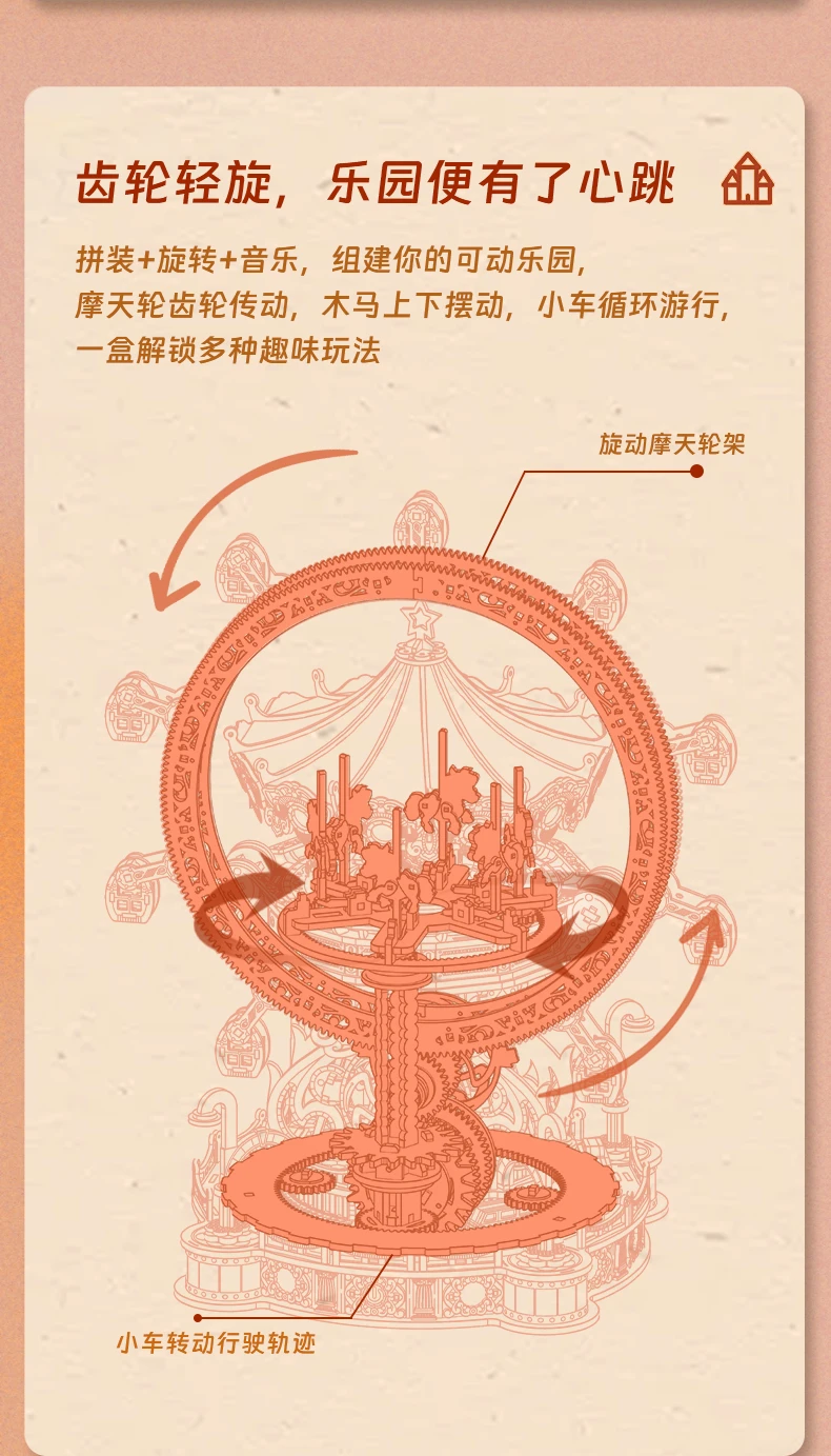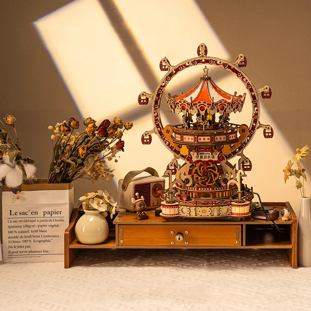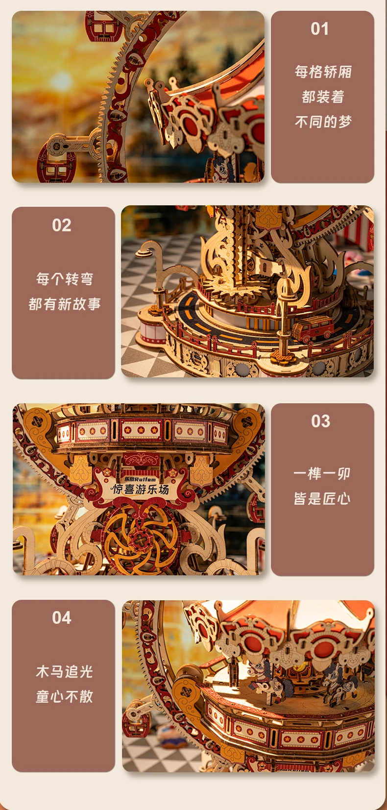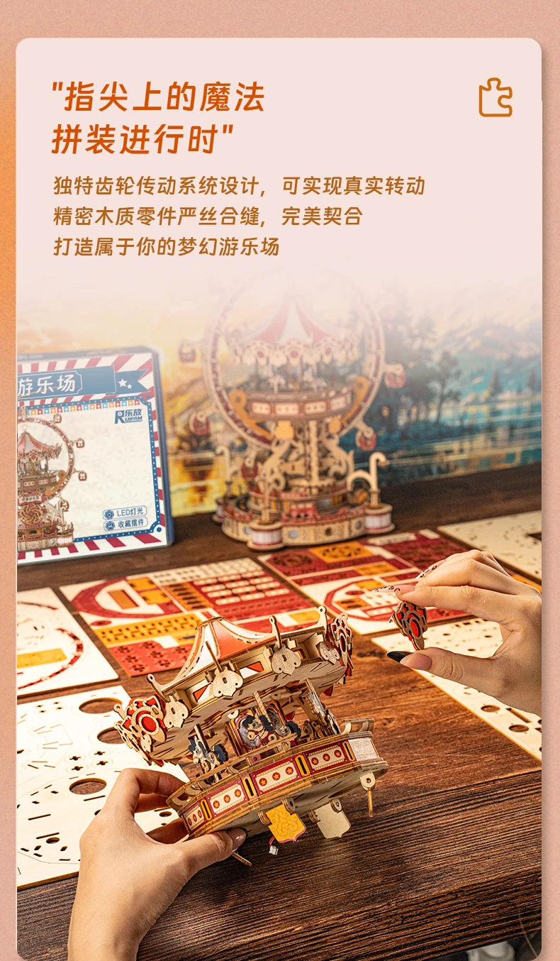 NEW DIY 3D Wooden Puzzle Playground Miniature Model Kits Assembly Jigsaw Puzzles Can Turn for Friends Birthday Gifts