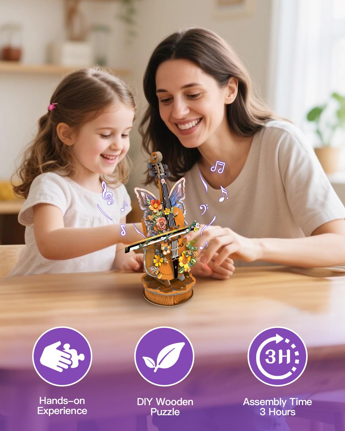 - 【Elegant 3D Decoration】:The completed cello model kit features an elegant design, with exquisitely carved patterns on the cello body complemented by the motif of dancing butterflies. It functions both as a music box and an artistic display piece, adding a unique artistic ambiance to your study or desk.