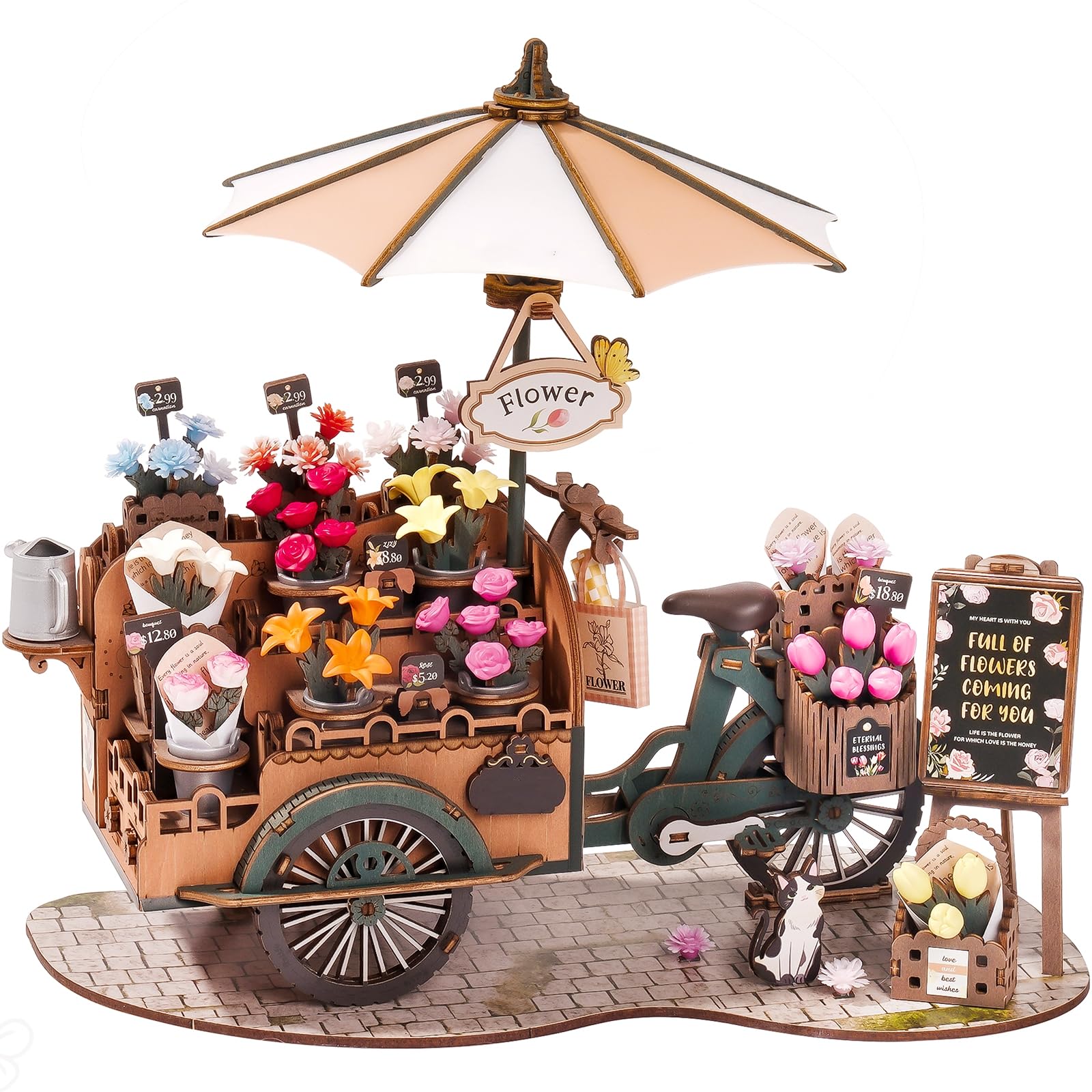 ROBOTIME 3D Puzzles for Adults DIY Model Kit to Build Floral Cart Wooden Puzzle Craft Kit Toy Hobby Gift Home Decor