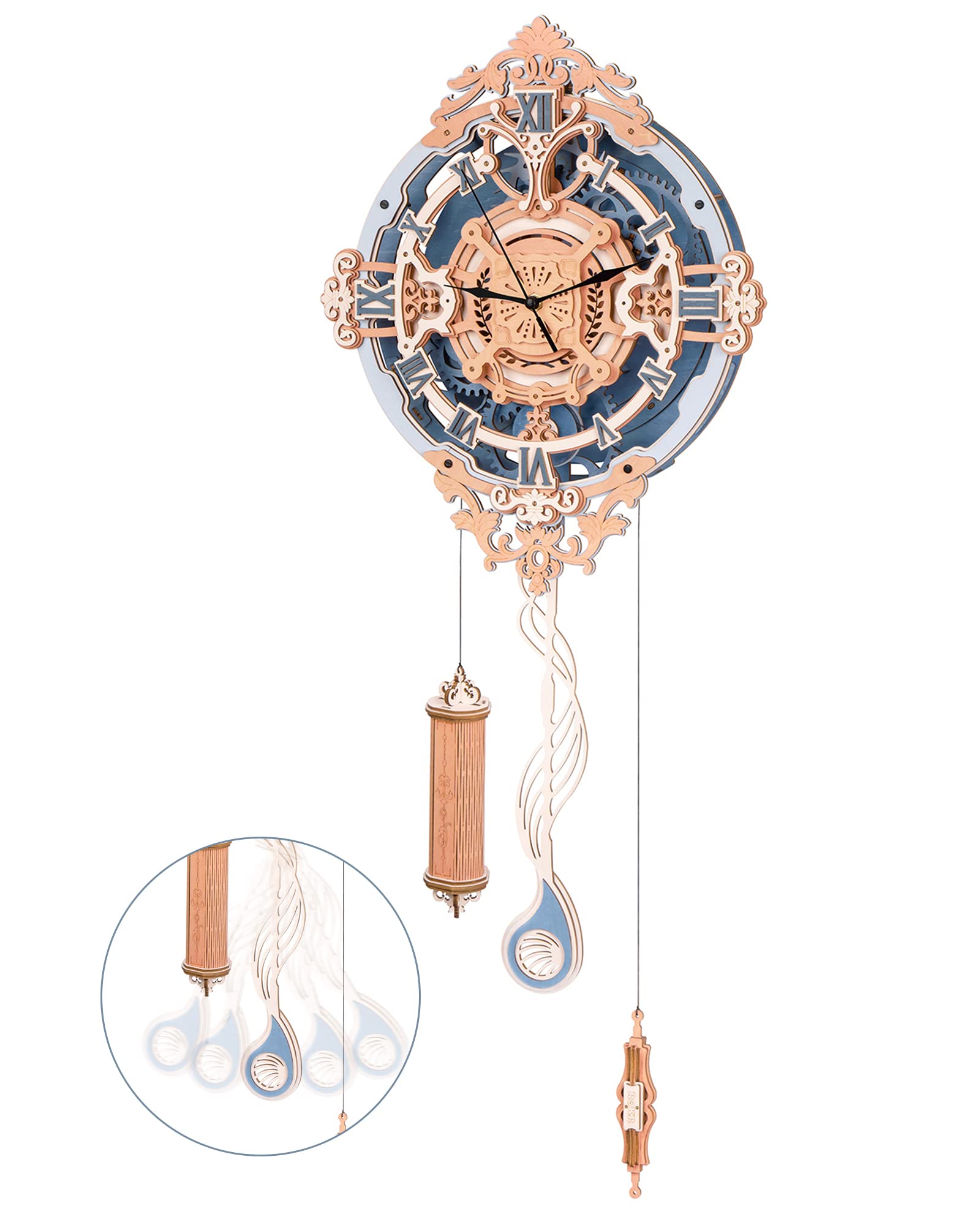 ROBOTIME Clock Wooden Puzzle, 3D Puzzle for Adults Wooden Metal Mechanical Model Clock Kits to Build, Hobbies Gift for Men Aesthetic DIY Decoration Wall Clock with Pendulum