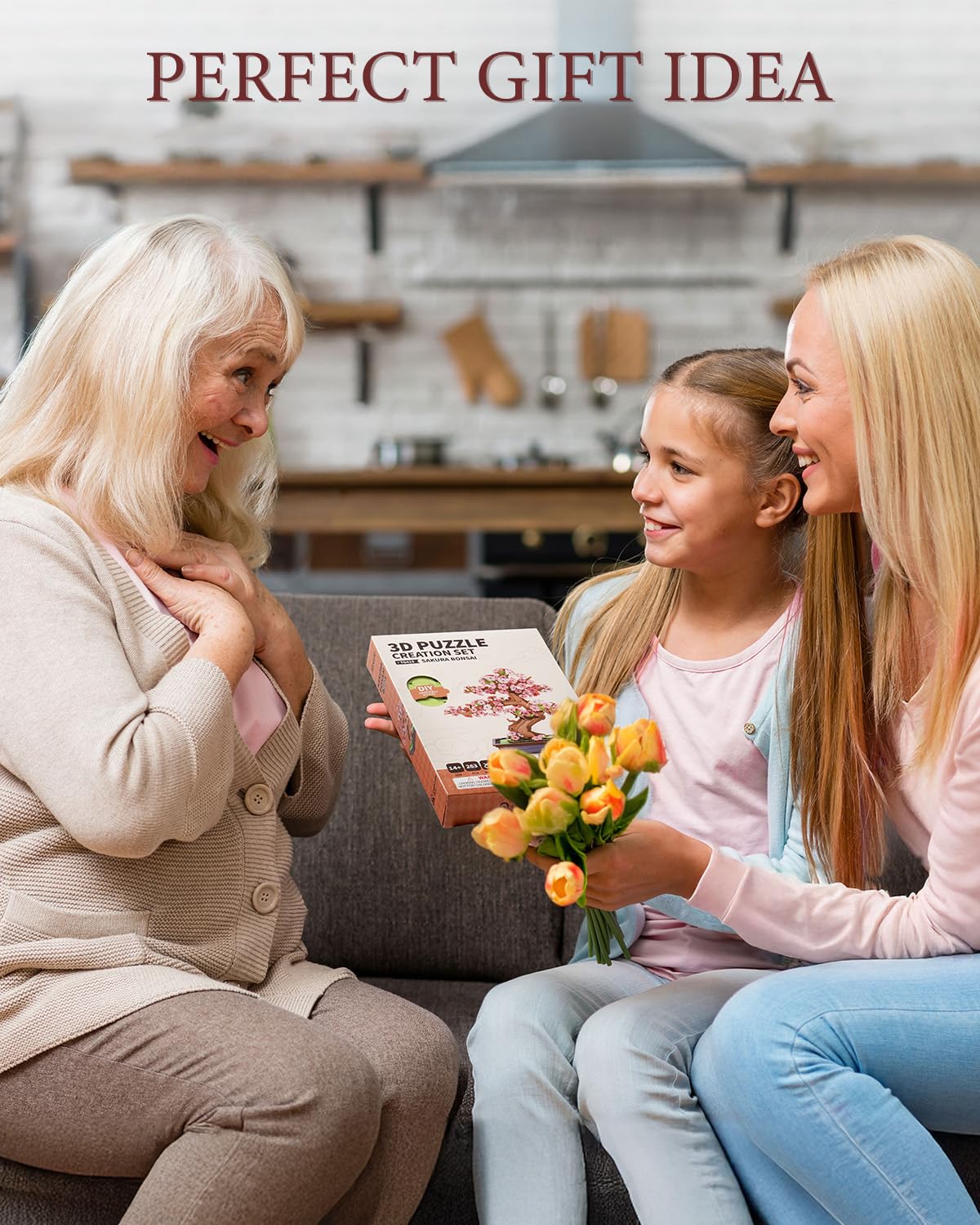 - 【Classic Design】This cherry blossom bonsai building set combines traditional cherry blossom elements with 3D puzzle toys, creating a toy that embodies both Eastern aesthetic charm and modern aesthetic trends. Its delicate cherry blossoms and treehouse design not only showcase the beauty of nature but also reflect the creativity and uniqueness of the toy.