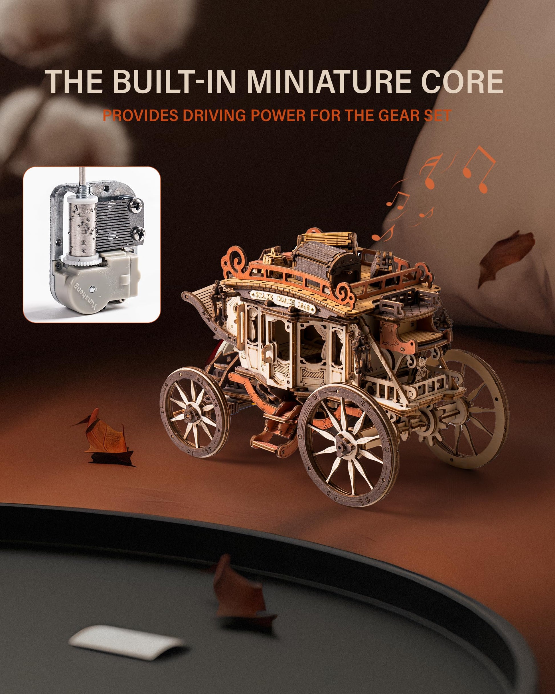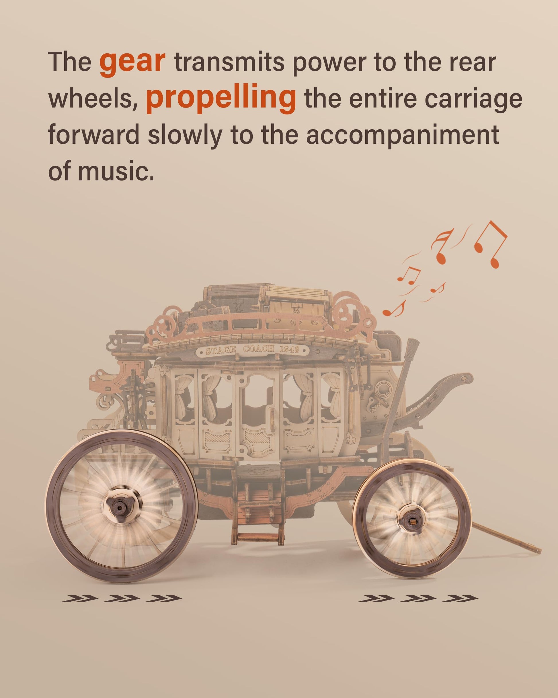 - 【Also a Wooden Music Box】This 3D puzzles for adults not only recreates the appearance of the stagecoach but also incorporates a miniature core for power. After winding up the spring, the gear transfers power to the rear wheels, gradually propelling the entire model forward to the accompaniment of the music. The featured melody is "Greensleeves".