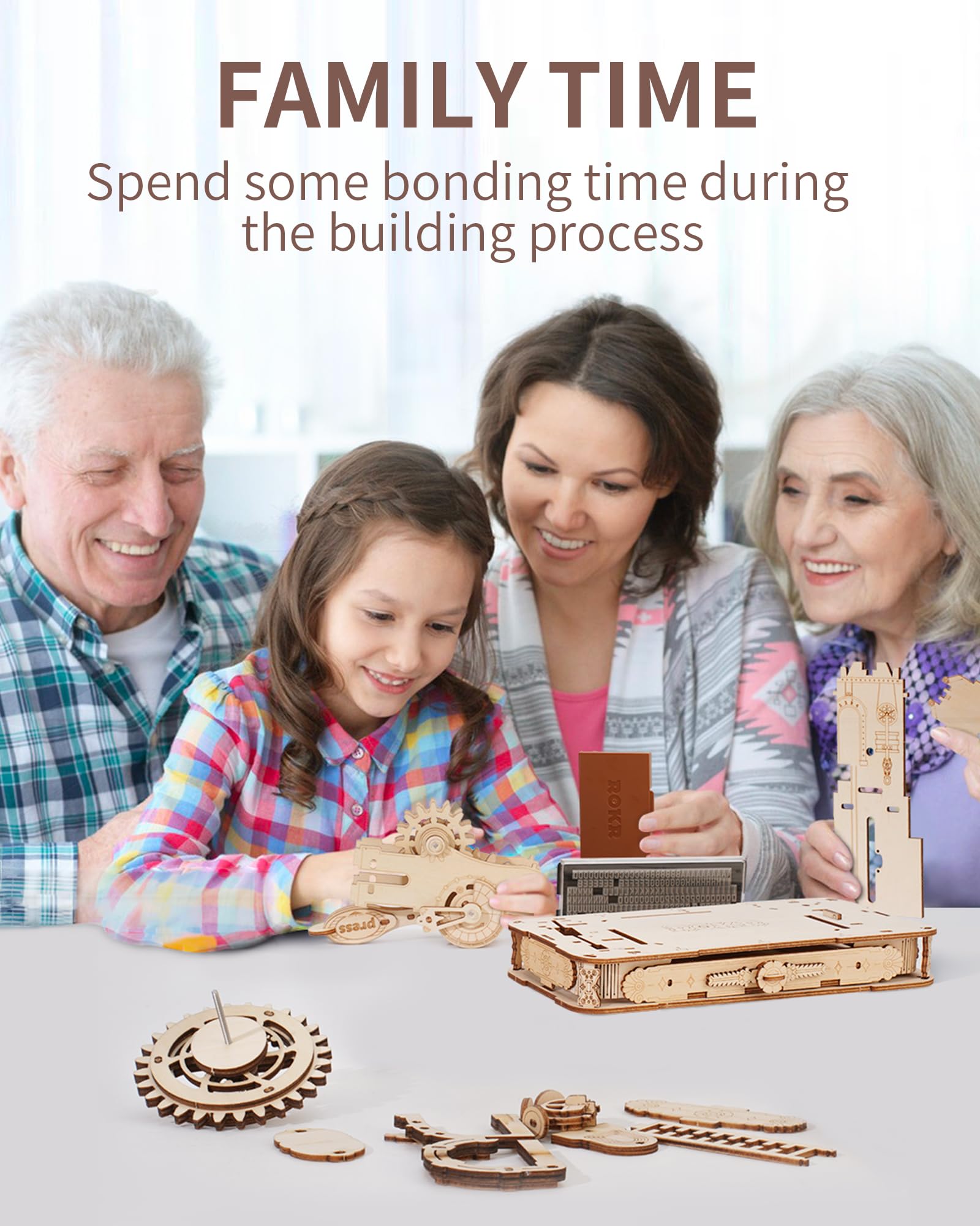 - [Wood Crafts]: These 3D wooden puzzles are made of pollution-free wood, laser cutting is precise, and wood is smooth. The printing and hollow-out designs on the wood are lovely, cute bear print-maker's carved adds a touch of childlike fun. The gear design is a microcosm of the mechanical industrial age, allowing people to remember the history of progress. ROKR always follows the principle of learning through play, makes people to feel the charm of DIY from building 3d puzzle kit.