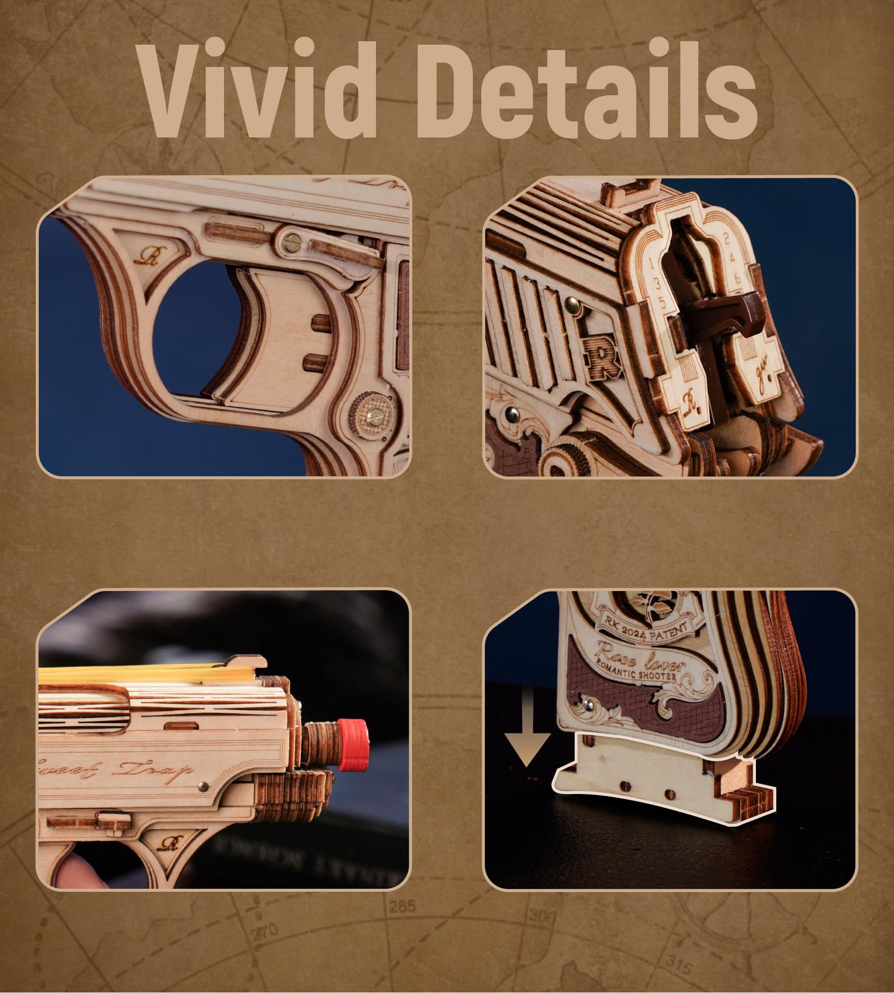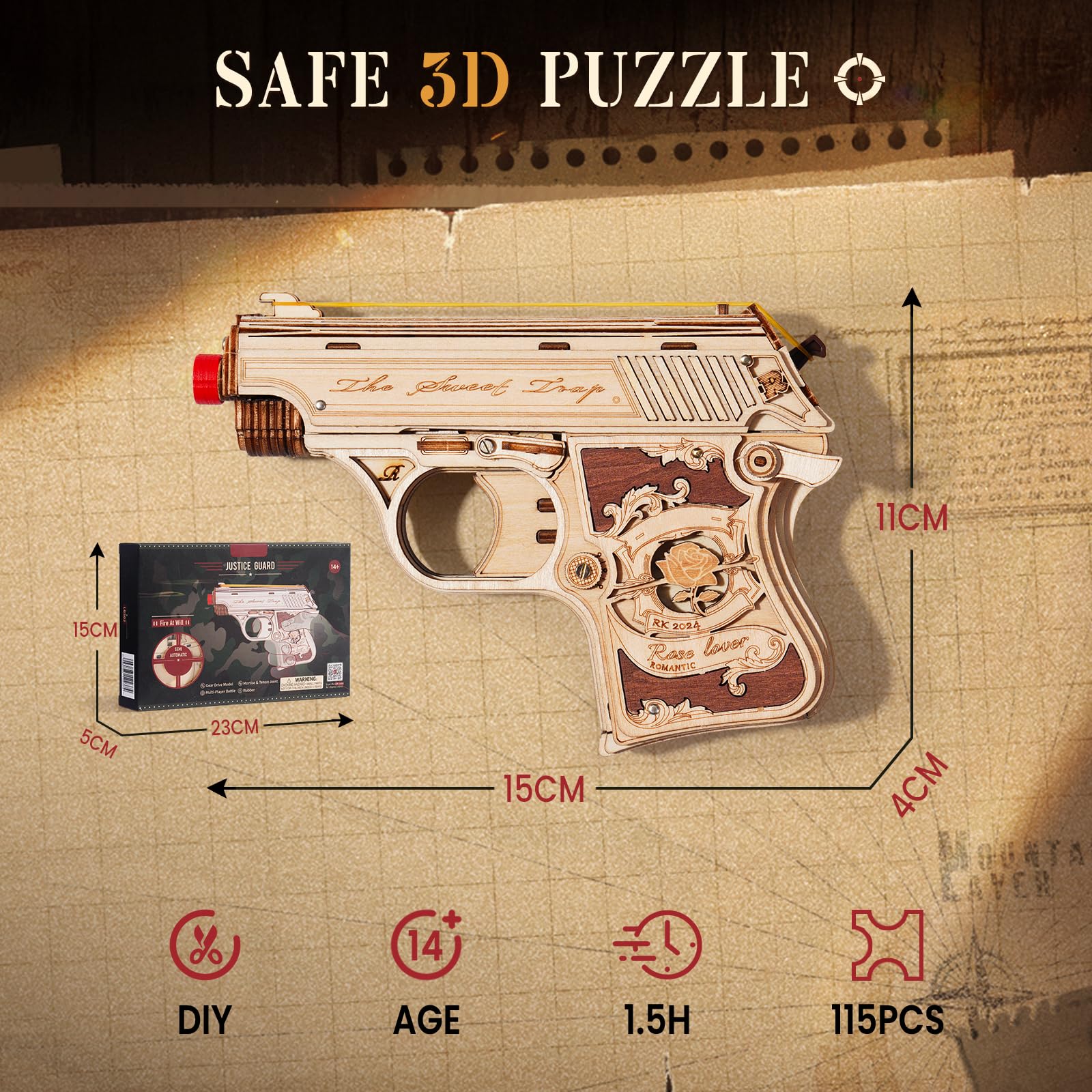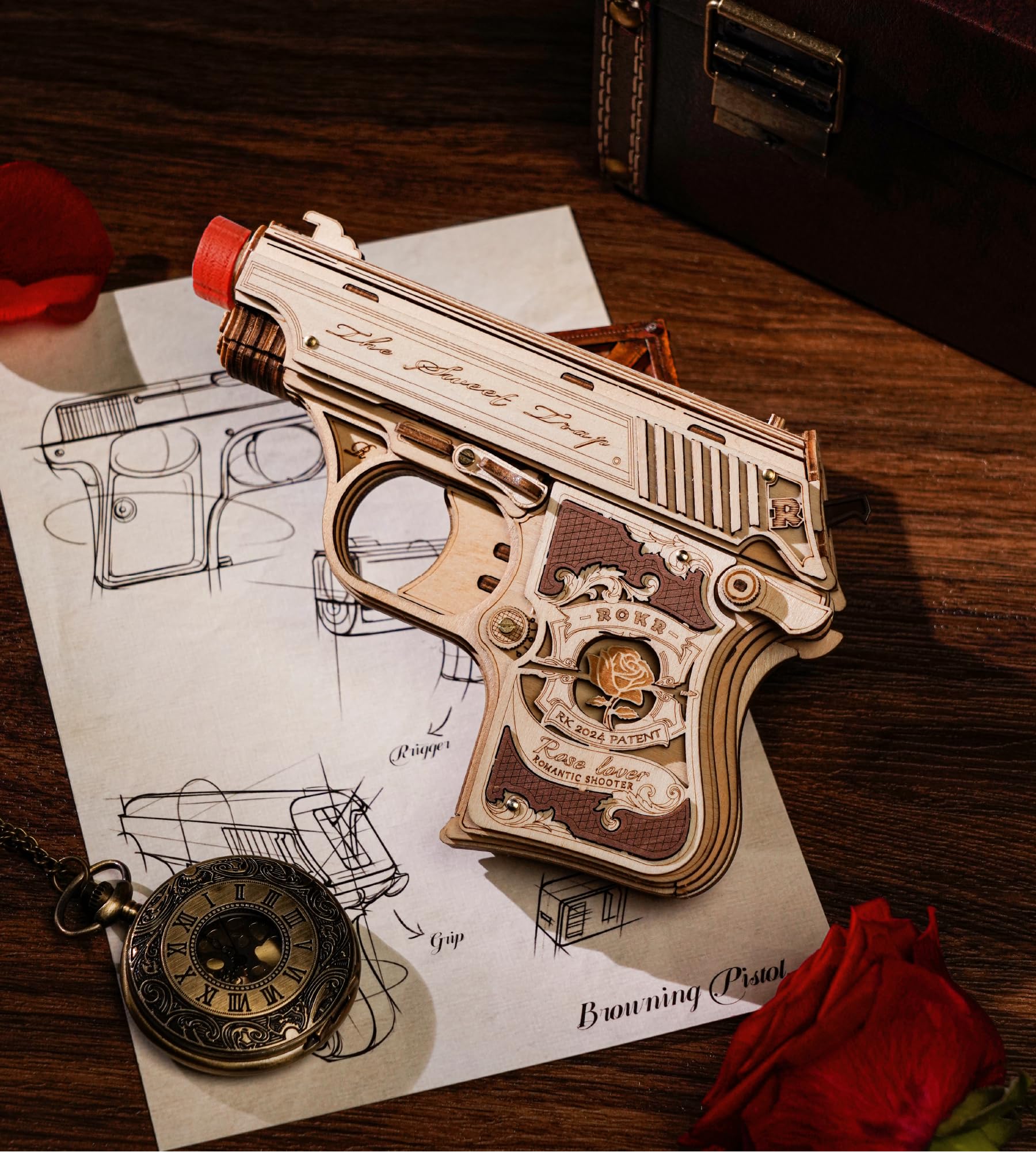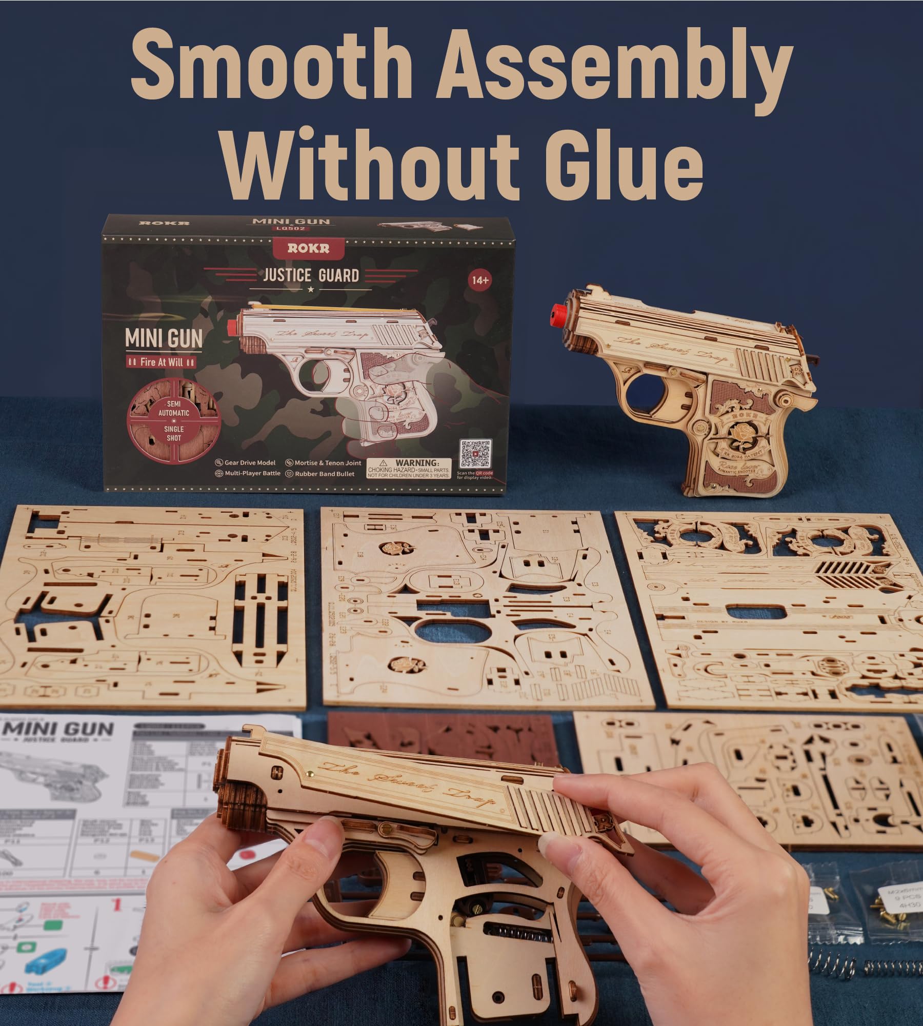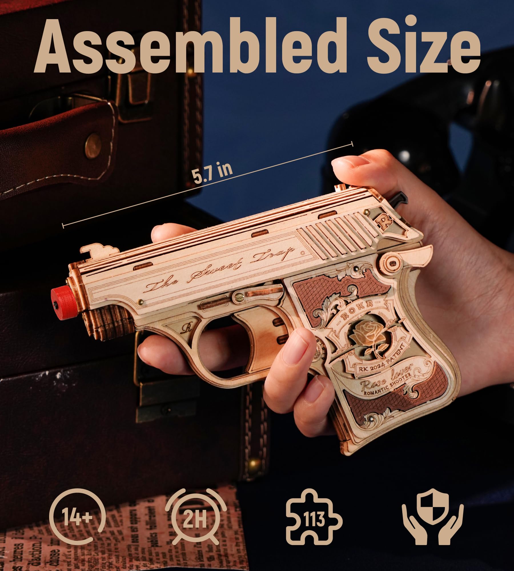 - [Craftsmanship] ROKR 3D Wooden Puzzles are crafted with precision laser-cutting technology, featuring 113 pieces made from high-quality plywood. This design is inspired by classic pocket pistols, unlike other ROKR models such as the LQ901, submachine LQB01, revolver LQ401, it blending historical elements with superior craftsmanship.