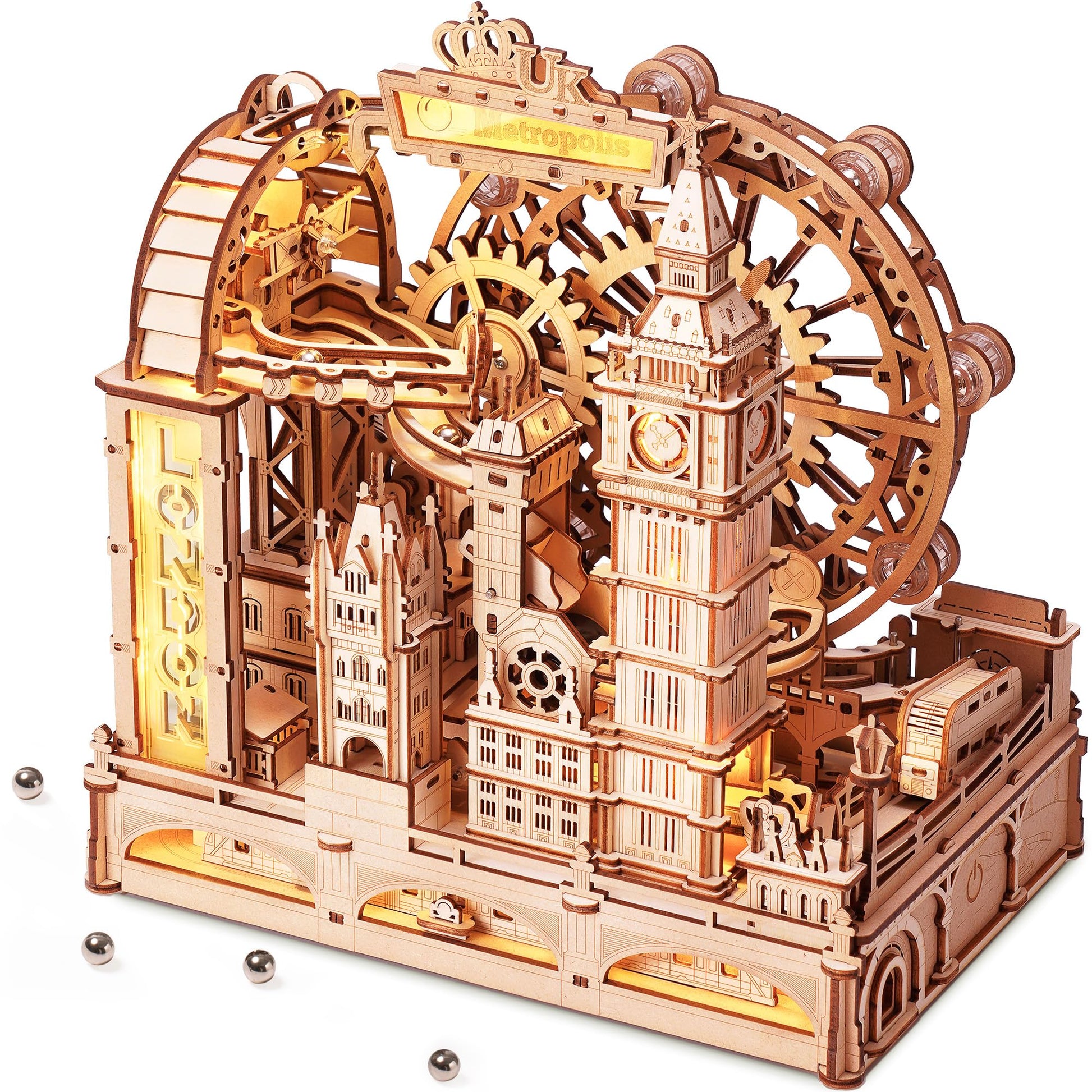 ROKR Marble Travel London, 3D Wooden Puzzles for Adults, Marble Run Kit Adults to Build, 3D Wooden Puzzle with LED, Unique Gift for Men Women