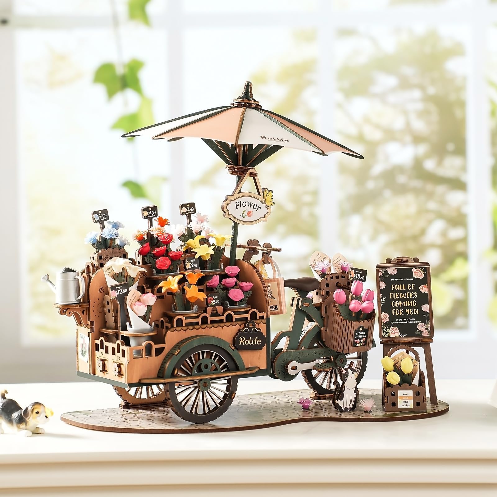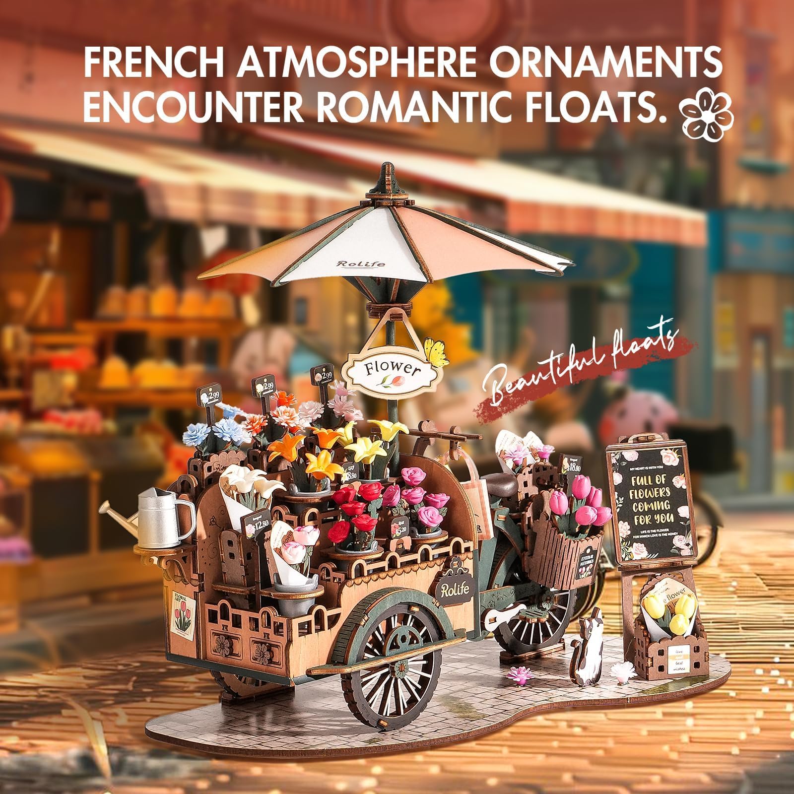 Rolife DIY 3D Wooden Puzzle for Adults, Flower Cart Brain Teaser Puzzle for Teens Girls Boys, Creative Craft Hobby Gifts Model Building Kits, Home Decor Assembly Toy