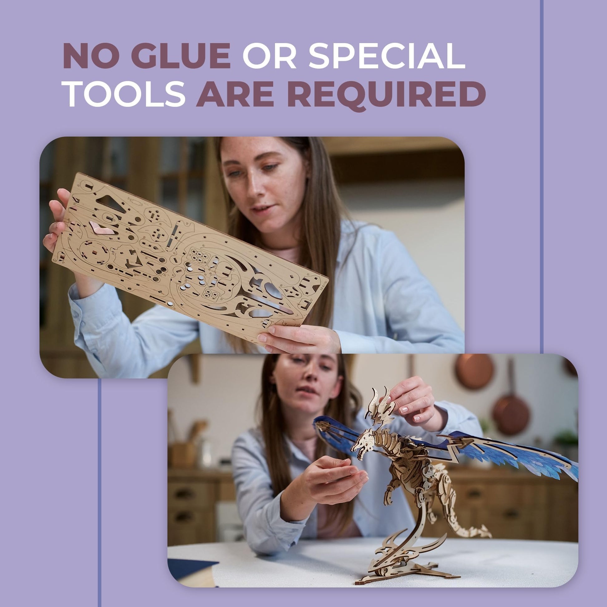 - Perfect Display Piece Miniature Kit: Unique puzzles for adults 3d dragon with wings can be set on a support or hung, making it a striking decoration for any home or office; fine wood puzzles adult